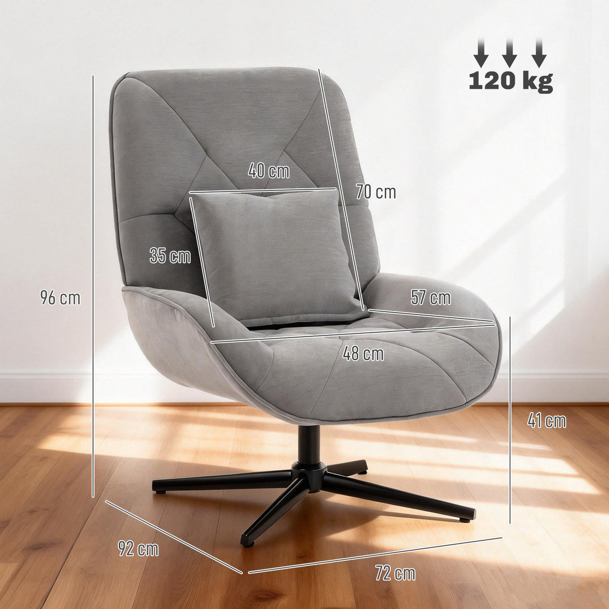 HOMCOM Accent Chair, Chenille Upholstered Swivel Armchair with Lumbar Pillow, High Back, Deep Seat and Metal Legs, Light Grey - Light Grey