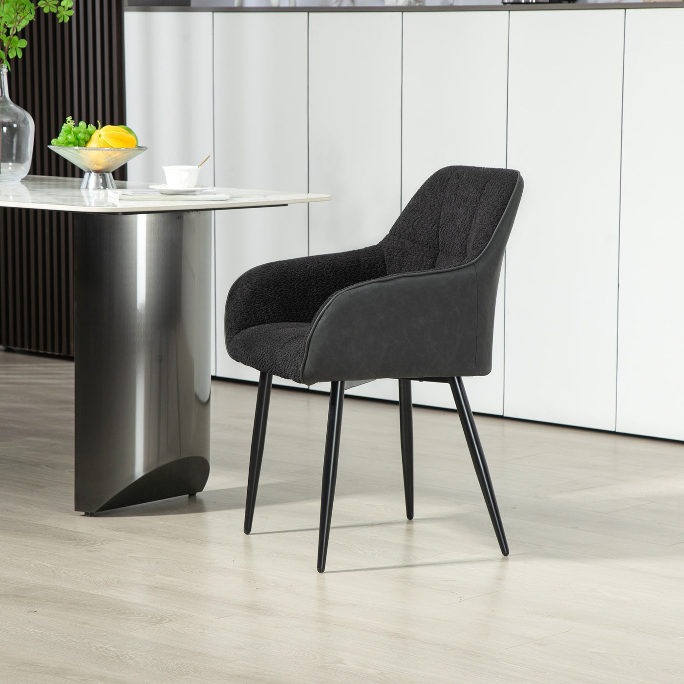 HOMCOM Accent Chair with Foot Pads, Upholstered Armchair with Chenille Fabric Front and PU Back, Occasional Chair for Living Room Bedroom, Black - Black