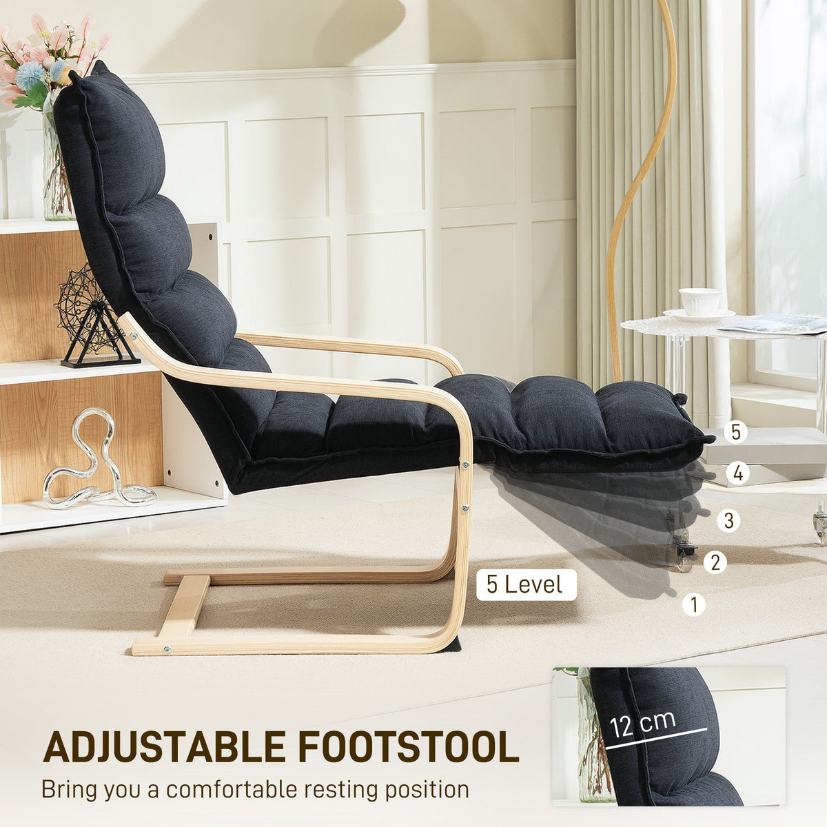 HOMCOM Curved Wooden Accent Chair, with Adjustable Footrest - Black
