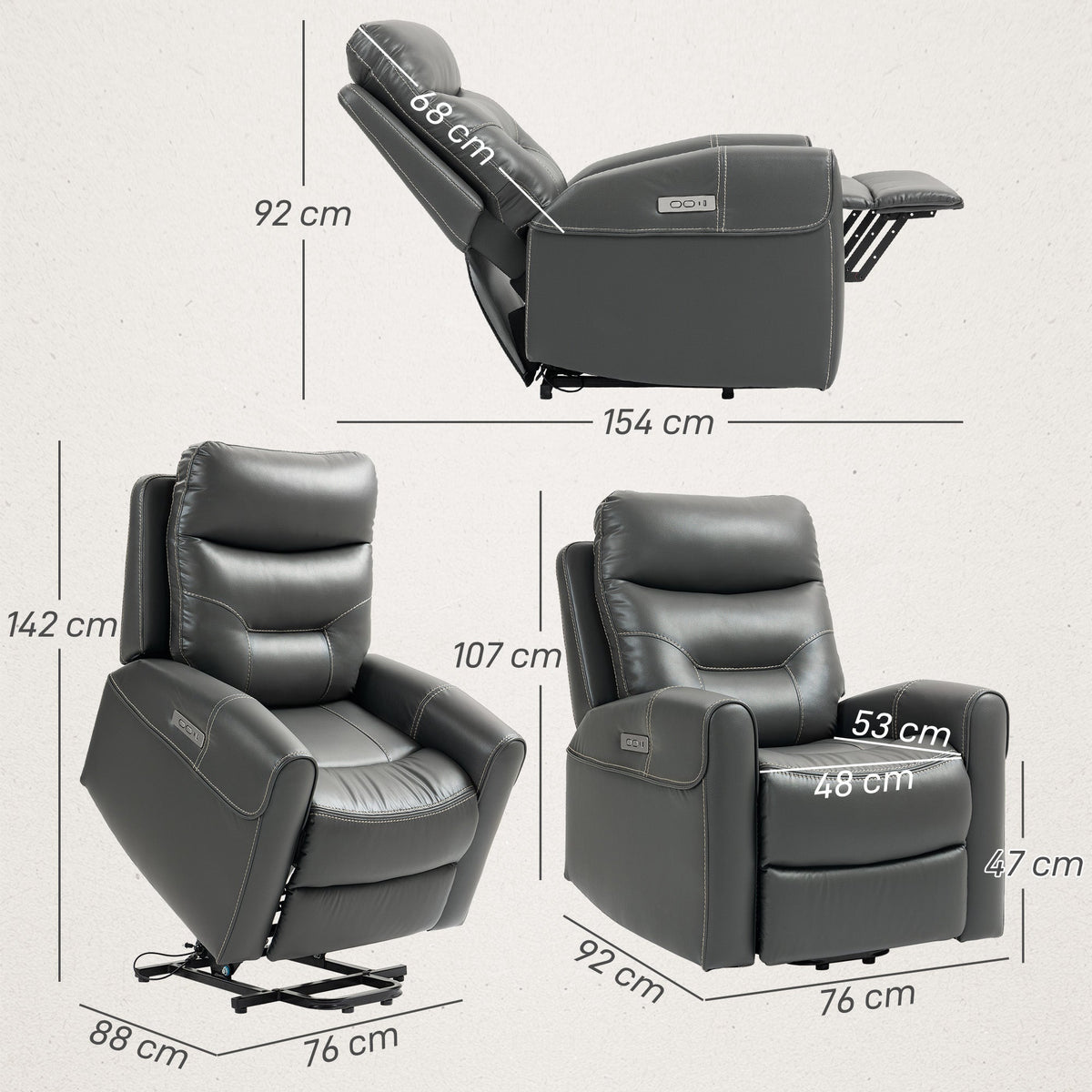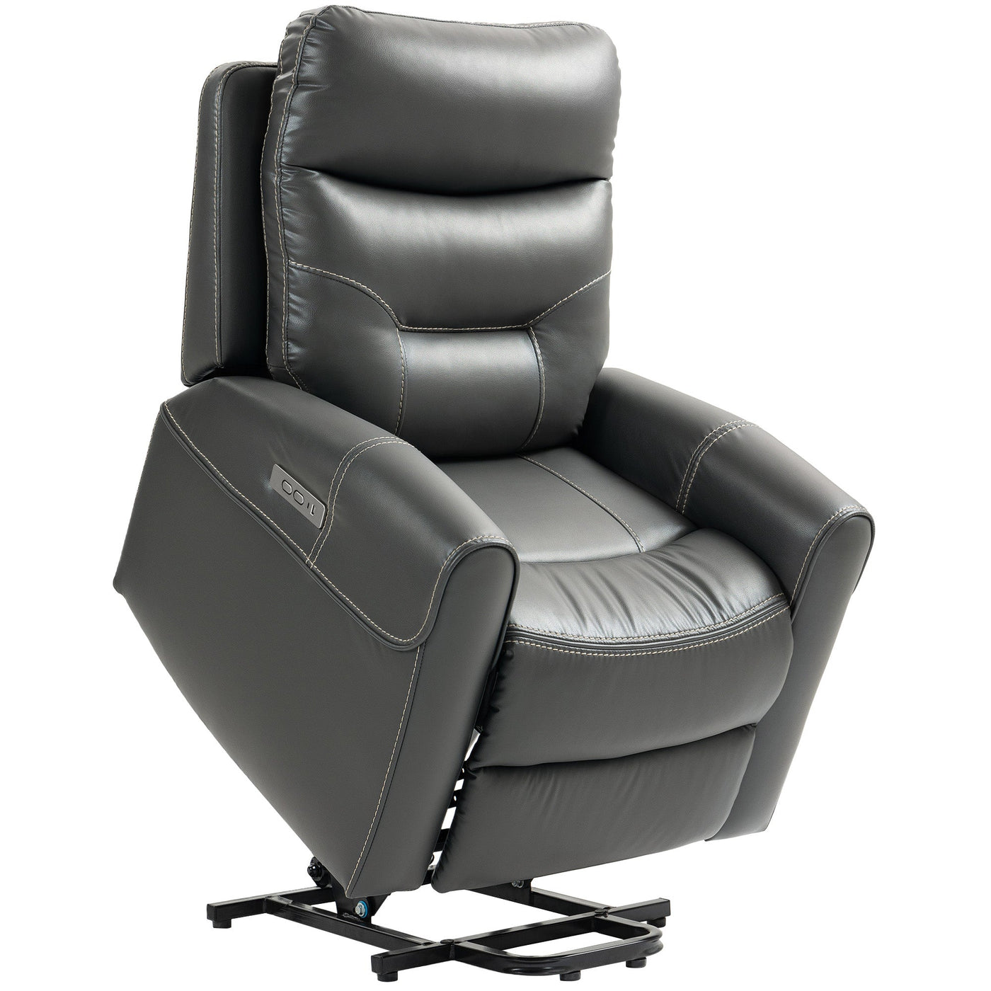 HOMCOM Power Lift Recliner Chair for Elderly, Overstuffed Faux Leather Riser and Reclining Chair with USB A+C Ports, Remote Control, Recliner Armchair for Living Room, Charcoal Grey - Charcoal grey