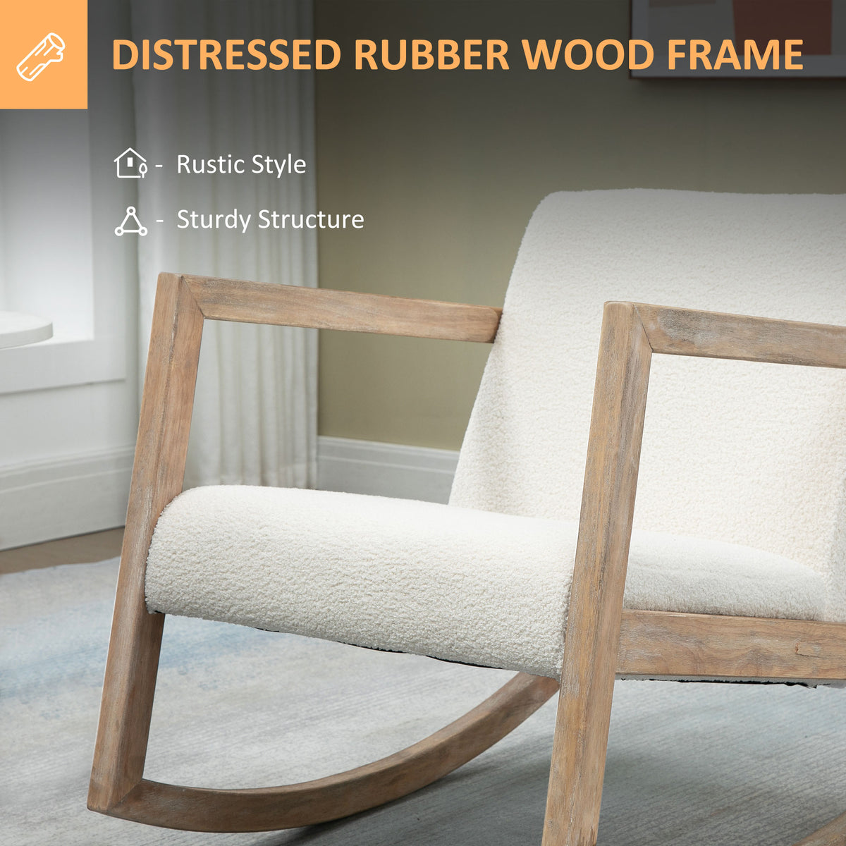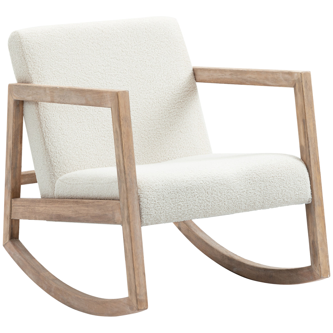 HOMCOM Rocking Chair, Upholstered Sofa Armchair with Cushion and Wood Base for Living Room and Bedroom, Cream White - Cream