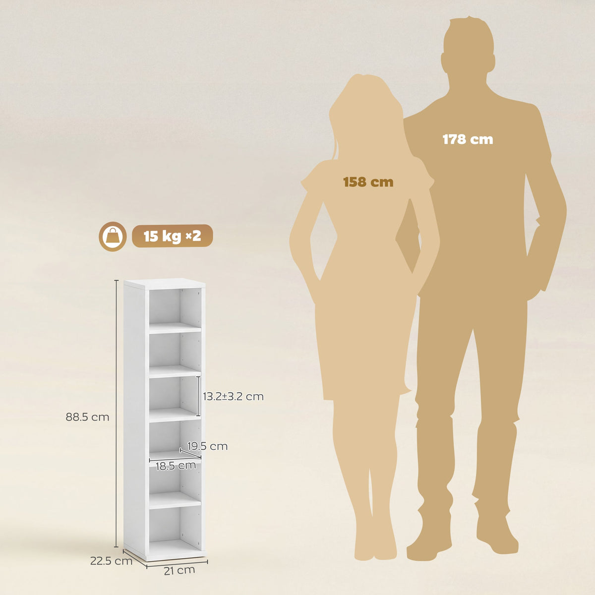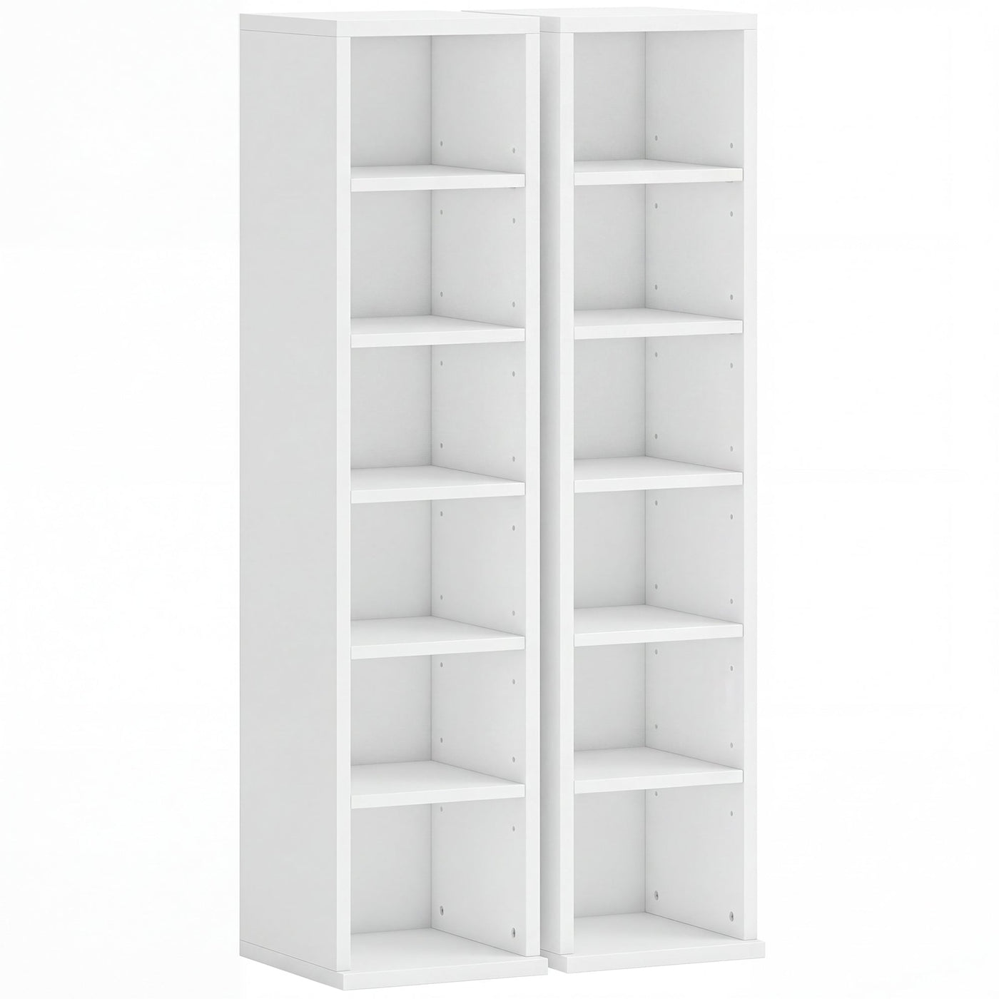 HOMCOM Set of 2 CD Media Display Shelf Unit Tower Rack with Adjustable Shelves, White