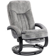 HOMCOM Swivel Recliner Chair with Footrest, Manual Recliner Armchair with Wooden Base, Plush Velvet Upholstered Reclining Chair for Living Room, Bedroom, Office, Grey - Grey