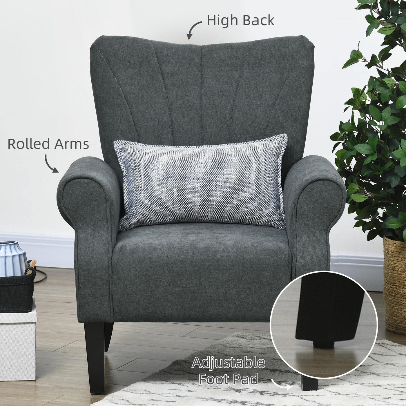 HOMCOM Upholstered Accent Chair with Rolled Arms and Wood Legs, Armchair for Living Room Bedroom, Grey - Grey