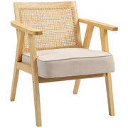 HOMCOM Wooden Rattan Weave Panel Accent Chair - Natural Finish