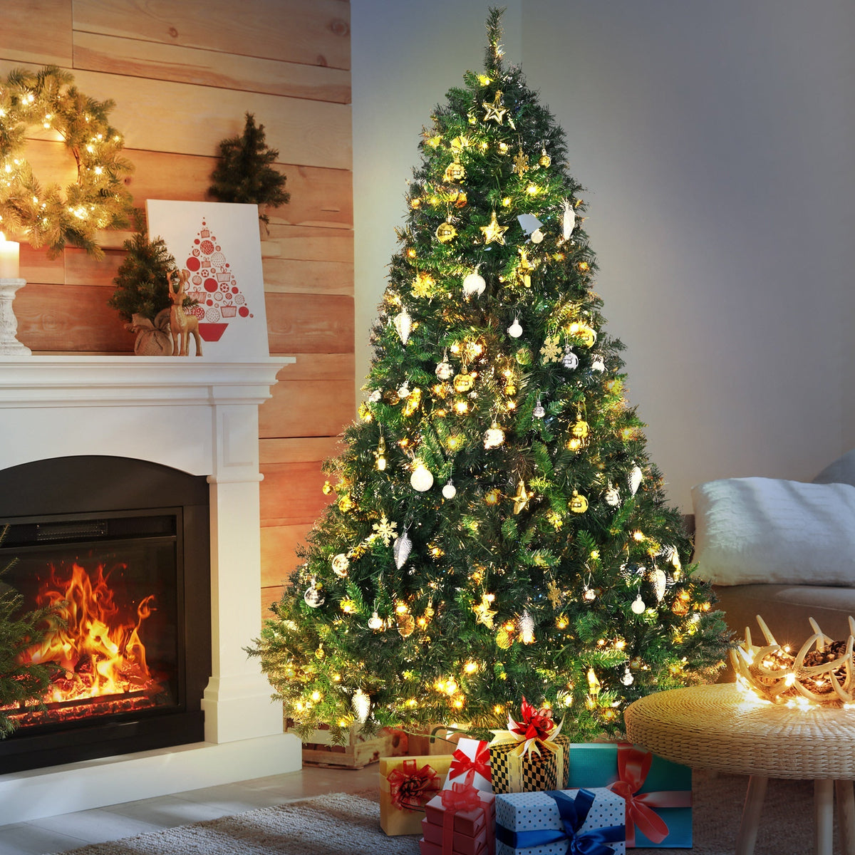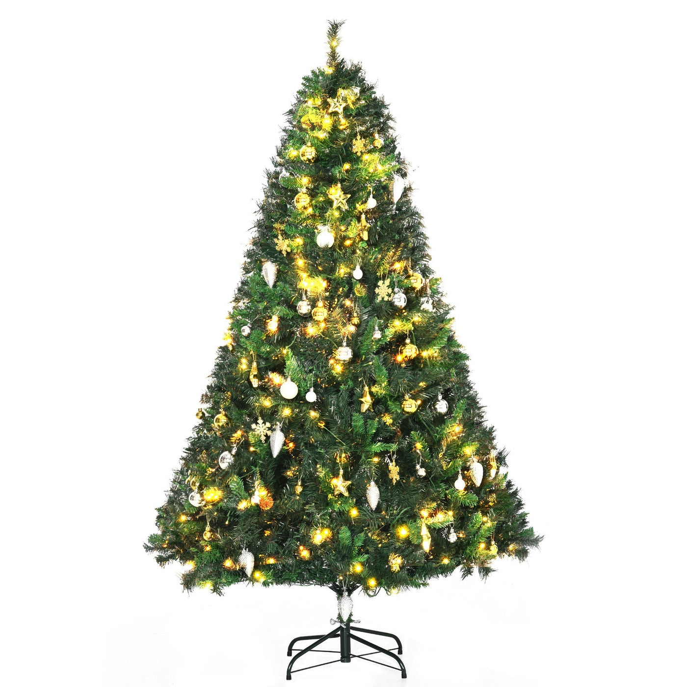 HOMCOM 1.8m 6ft Pre-Lit Artificial Christmas Tree 200 LED Xmas Tree Holiday Décor with Decorative Balls Ornament Metal Stand