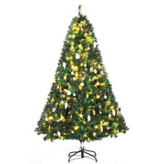 HOMCOM 1.8m 6ft Pre-Lit Artificial Christmas Tree 200 LED Xmas Tree Holiday Décor with Decorative Balls Ornament Metal Stand - Green
