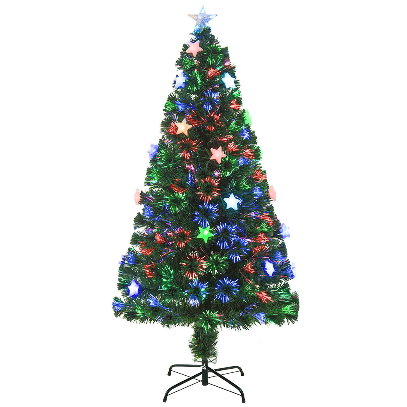 HOMCOM 5FT Prelit Artificial Christmas Tree Fibre Optic Star LED Light Holiday Home Xmas Decoration with LED Light for Indoor Party, Green - Green