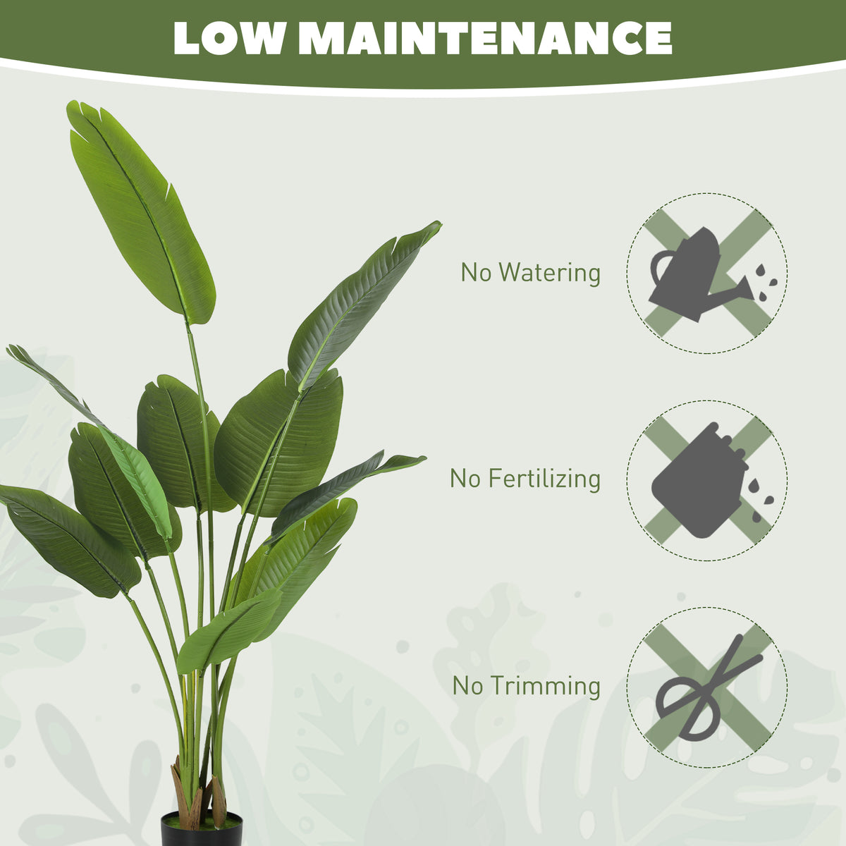 HOMCOM 160cm Tall Artificial Bird of Paradise Plant, Faux Banana Leaf Tree with PEVA Leaves and Flocking, Decorative Palm Tree in Pot for Home Office Decor, Green - Green