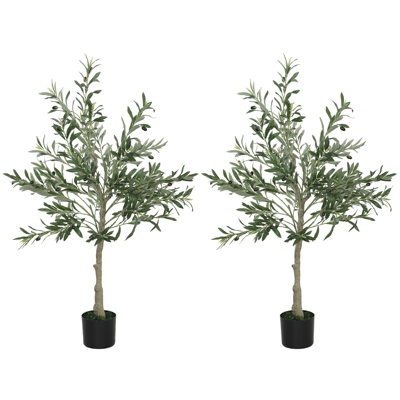 HOMCOM Set of 2 4ft/ 120cm Decorative Artificial Plant, Silk Olive Tree with 450 Leaves and 20 Olive Fruits in Pot, Fake Plant for Home, Office, Living Room, Indoor Decor - Green
