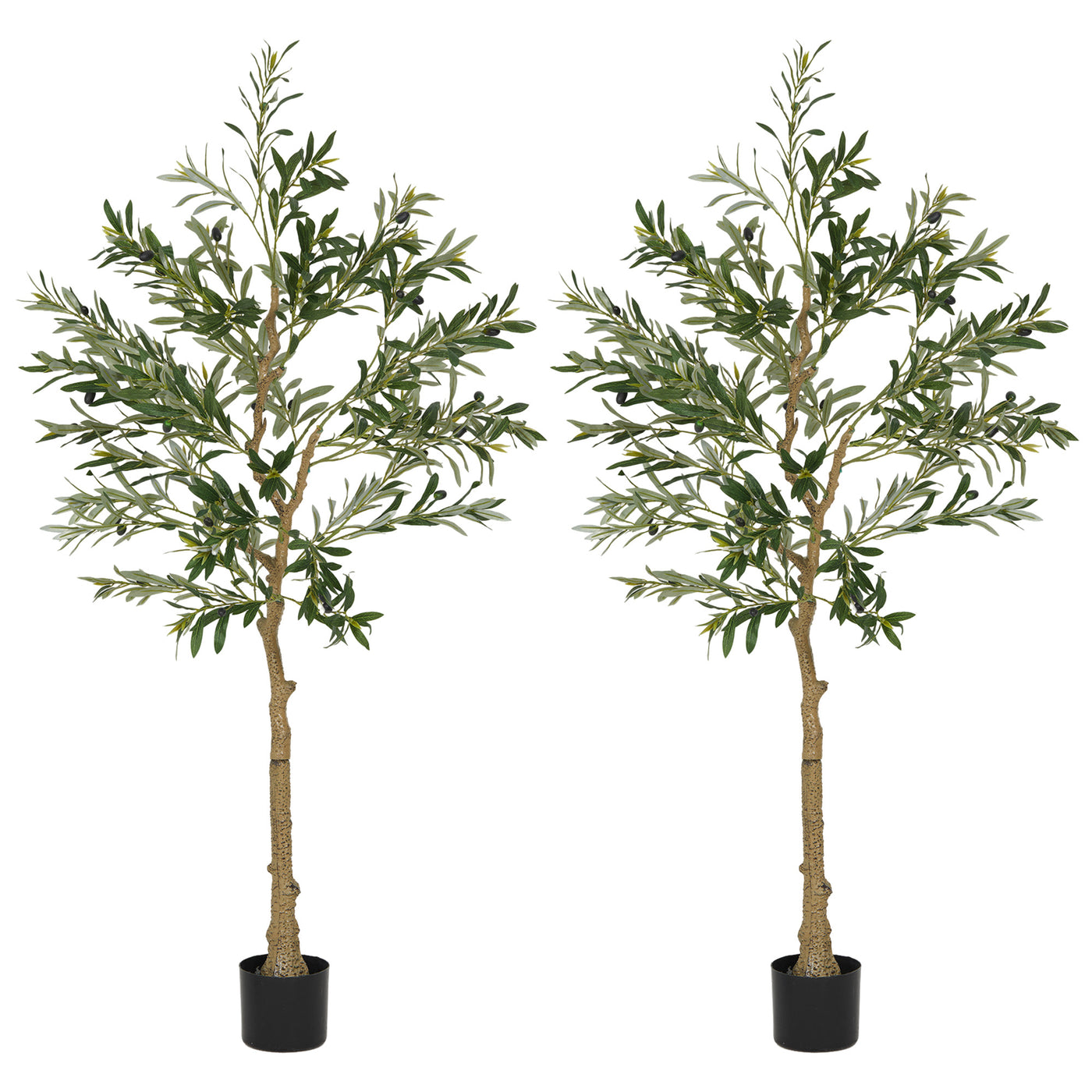 HOMCOM Set of 2 5ft/ 150cm Decorative Artificial Plant, Silk Olive Tree with 720 Leaves and 32 Olive Fruits in Pot, Fake Plant for Home, Office, Living Room, Indoor Decor - Green