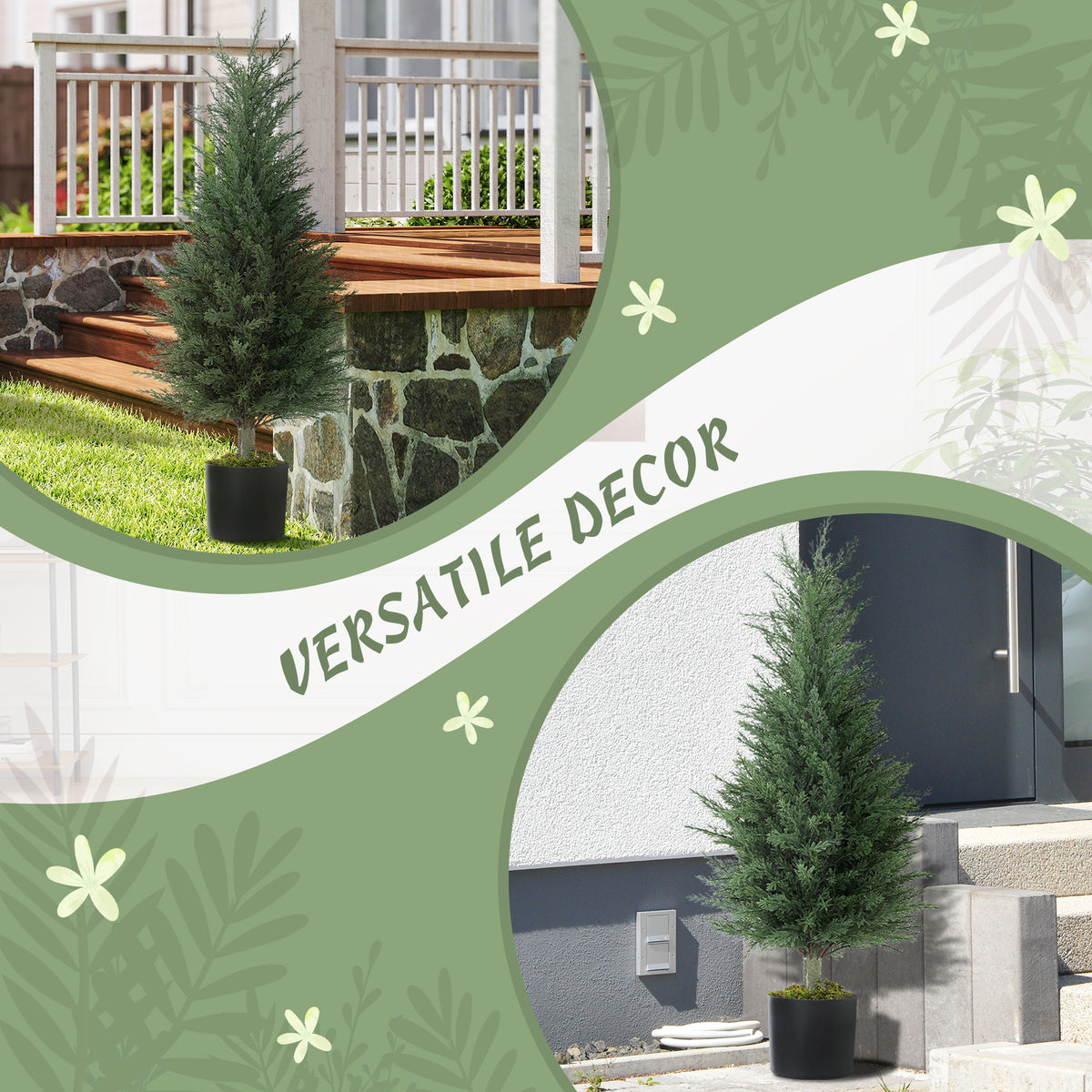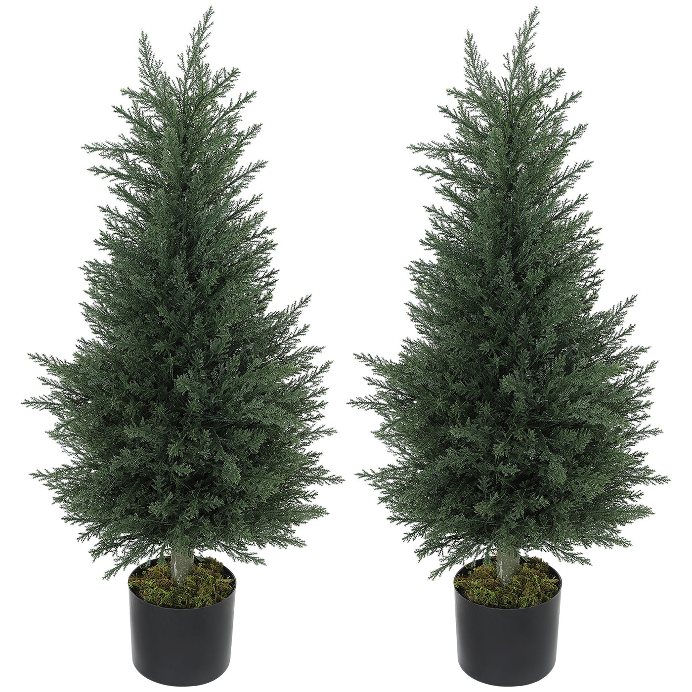 HOMCOM Set of 2 Decorative Artificial Plant, 90 cm Cypress Tree with 362 Leaves in Pot, UV-Resistant Plastic Fake Tree for Indoor Outdoor Home Office - Green