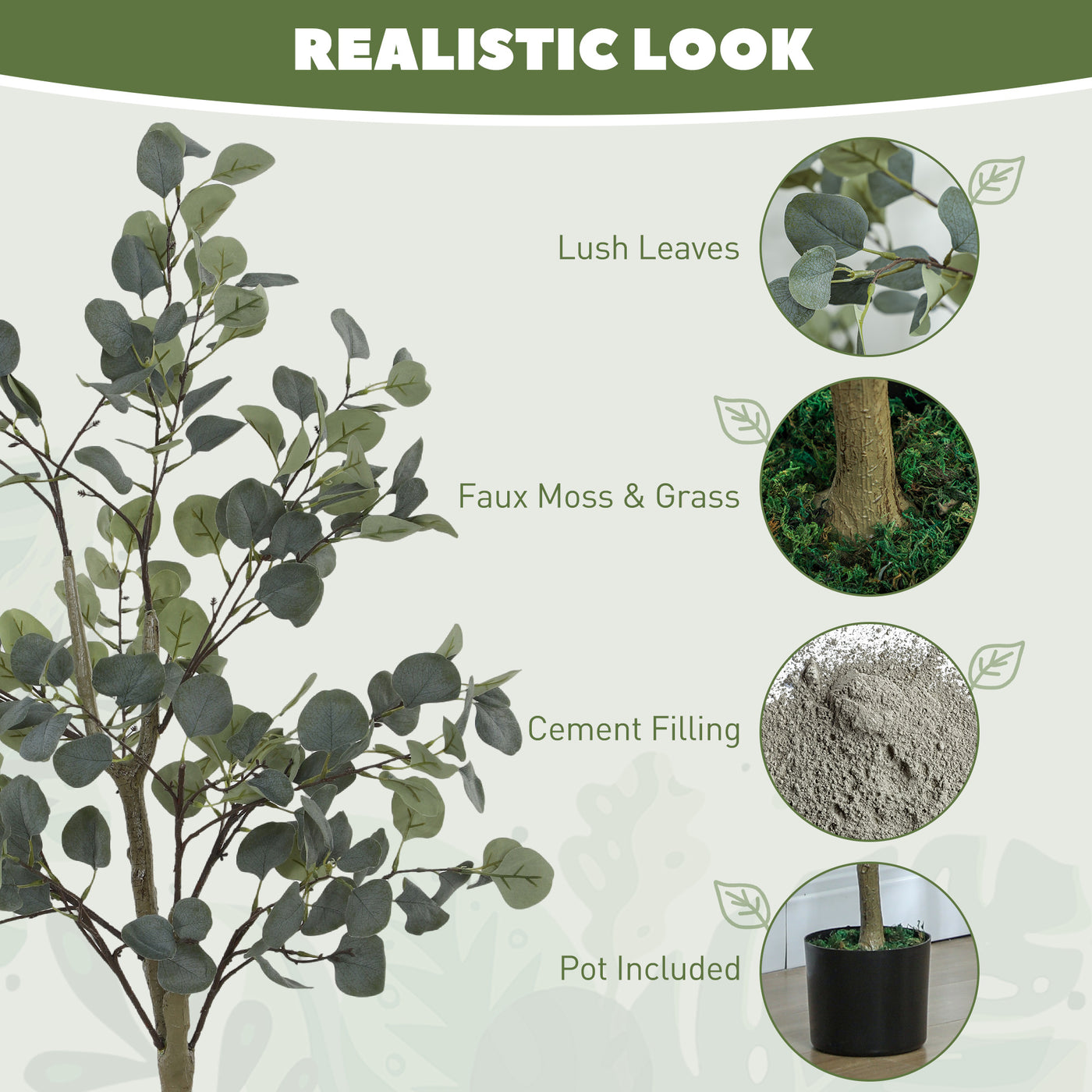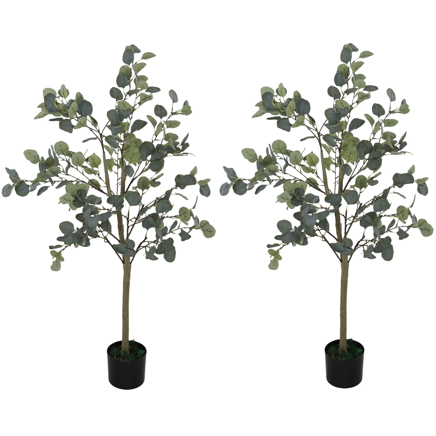 HOMCOM Set of 2 Decorative Artificial Tree, 4ft/ 120cm Silk Eucalyptus Trees with 230 Silver Dollar Leaves in Pot, Fake Plants for Home, Office, Living Room, Indoor Decor - Green