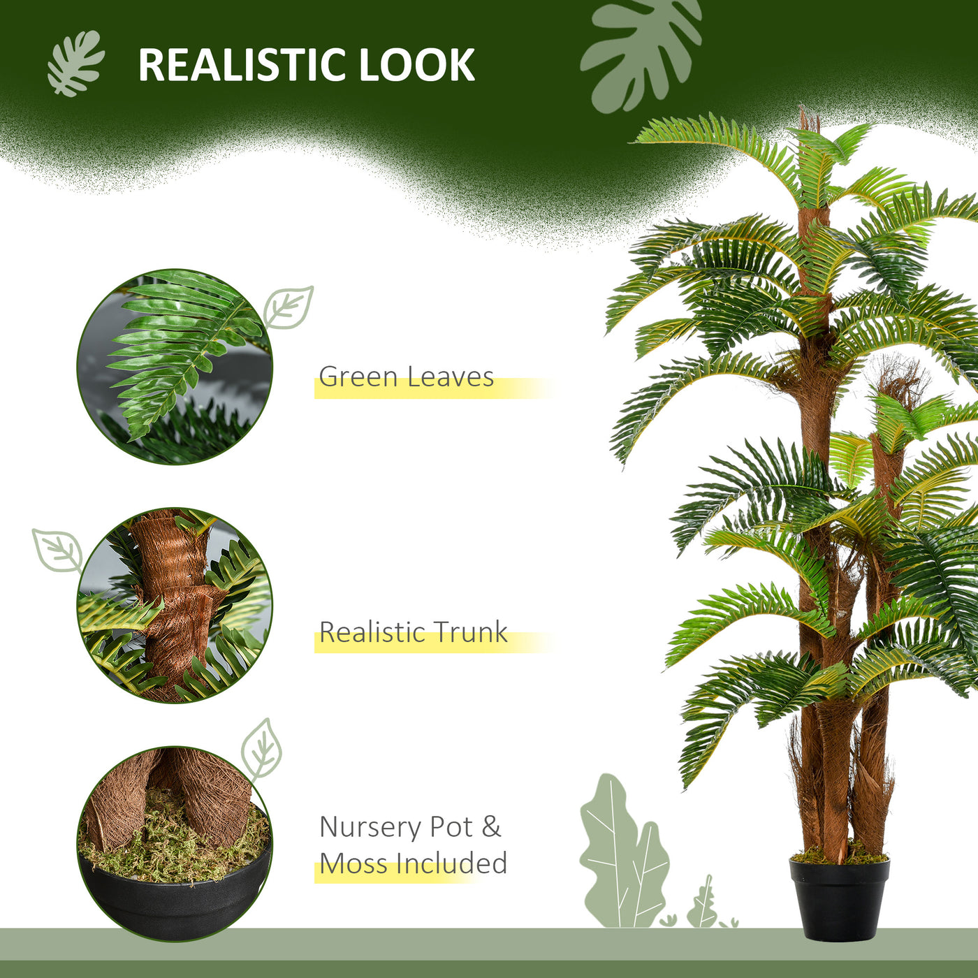 Outsunny Set of 2 Artificial Plant Tropical Palm in Pot, Fake Plants for Home Indoor Outdoor Decor, 150cm, Green - Green