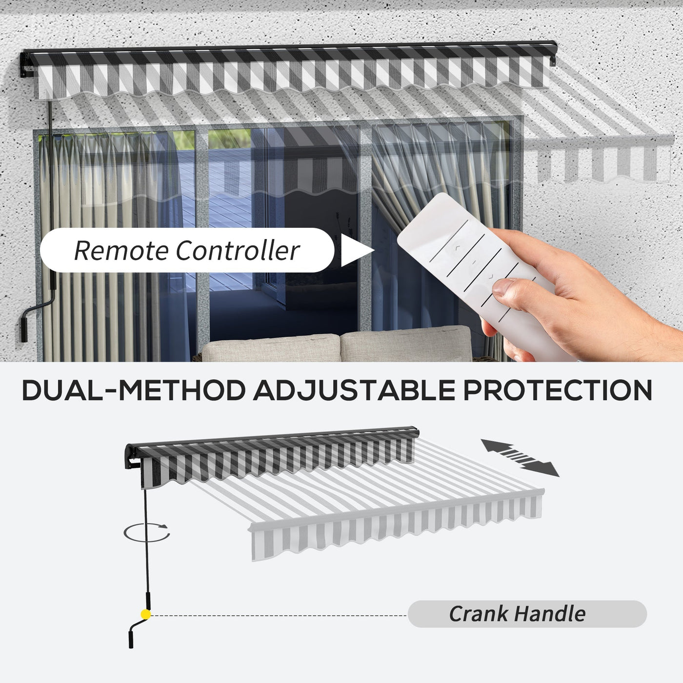 Outsunny 2.5 x 3.5m Aluminium Frame Electric Awning, with Remote - Grey/White - Grey, White