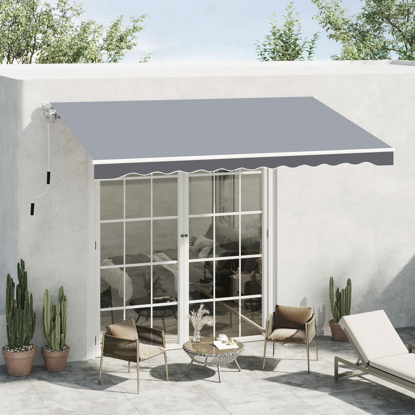 Outsunny 2.5m x 2m Garden Patio Manual Awning Canopy Sun Shade Shelter Retractable with Winding Handle Grey - Grey