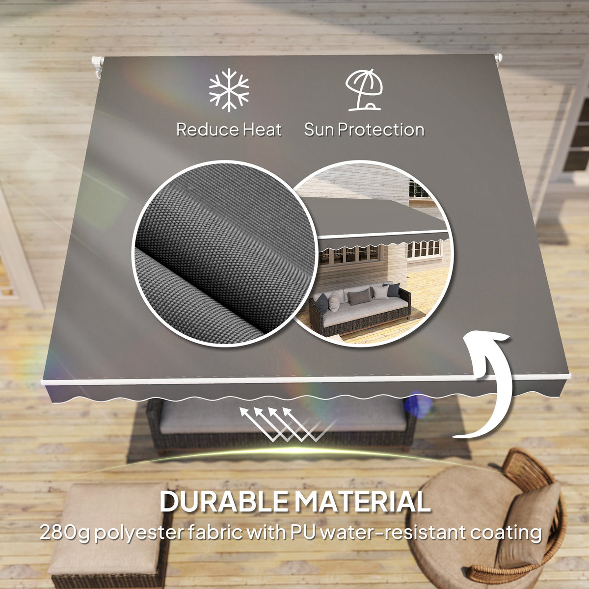 Outsunny 3 x 2.5m Garden Patio Manual Awning, Retractable Canopy Sun Shade Shelter with Fittings and Crank Handle, Dark Grey - Dark Grey
