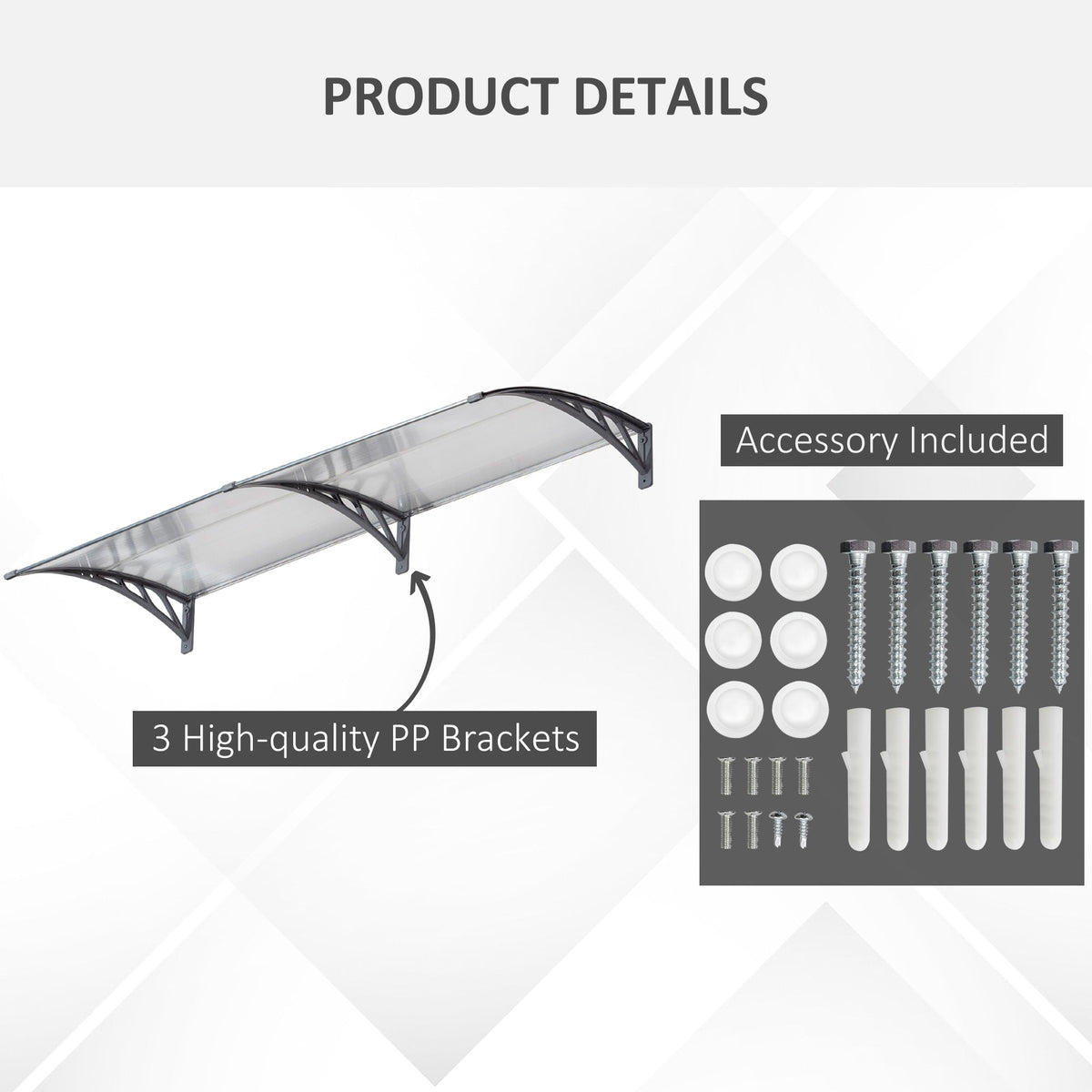 Outsunny Front Door Canopy Outdoor Awning Aluminium Rigid Plastic Polycarbonate Rain Shelter UV Water Rain Resistant 196 x 75cm Clear - Clear