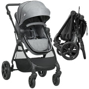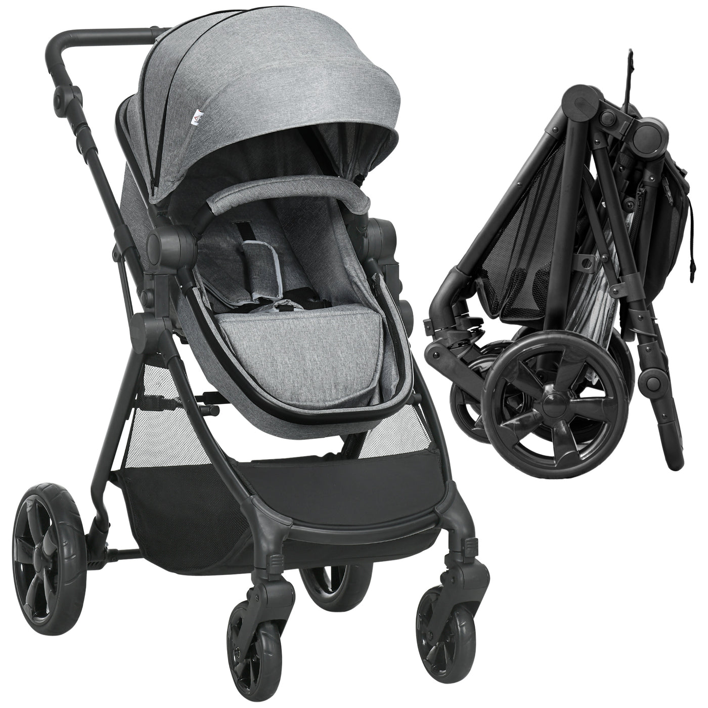 HOMCOM Foldable Baby Stoller, with Reclining Backrest, Adjustable Canopy, for Ages 0-36 Months - Grey - Grey