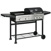 Outsunny 12kW Deluxe Duo Gas BBQ, with Grill, Plancha and Side Burner - Black - Black