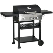 Outsunny Four-Burner Steel Gas Grill, with Thermometer - Black
