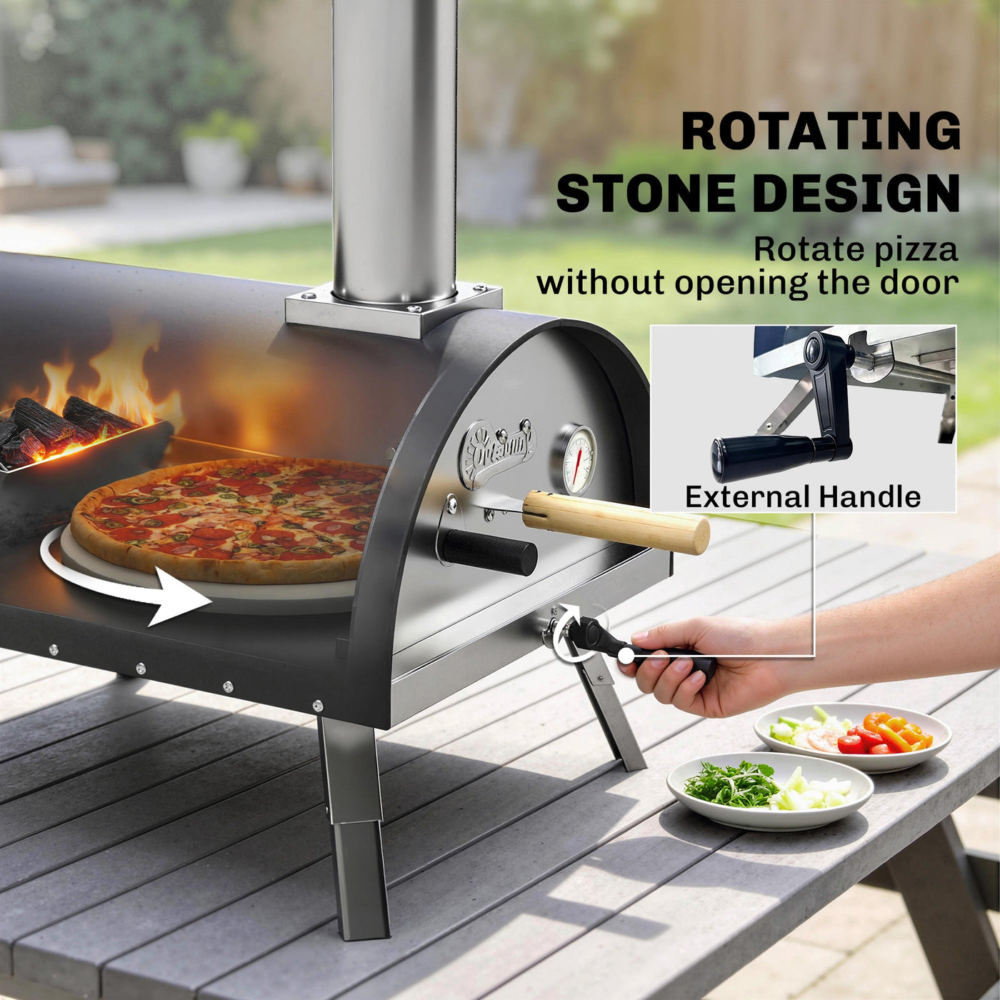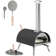 Outsunny Outdoor Pizza Oven Foldable Legs Pellet Wood Fired Pizza Maker w/ 12" Rotating Stone and Peel - Black