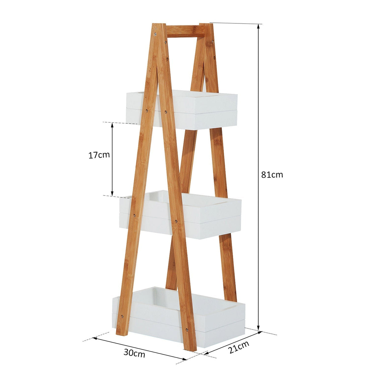 HOMCOM 3 Tier Bathroom Shower Caddy Freestanding Rack Storage Unit Shelf Organiser - White, Natural