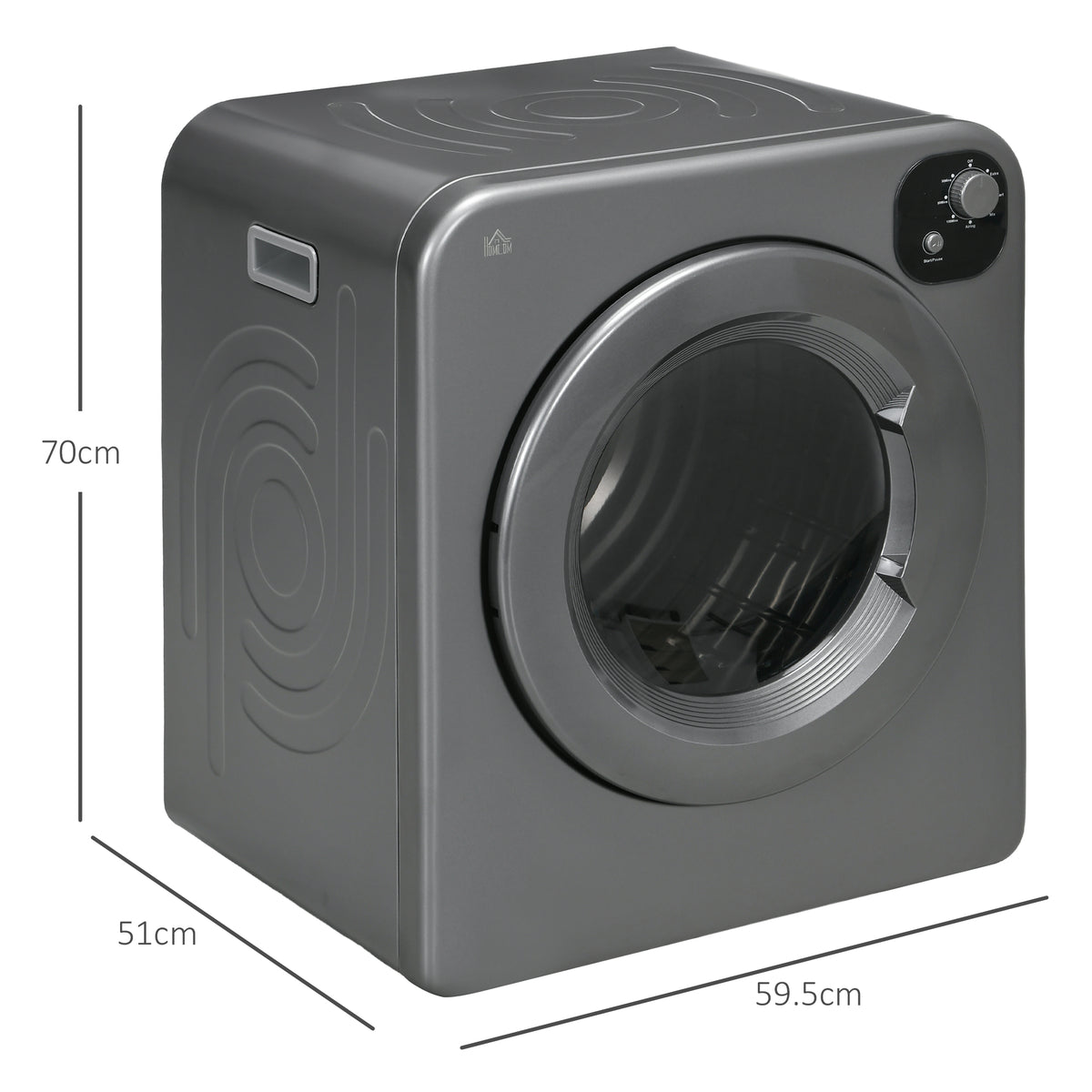 HOMCOM 6kg Vented Tumble Dryer, Freestanding, Wall Mounted, Stackable, Portable Dryer with 7 Programmers, Grey - Grey