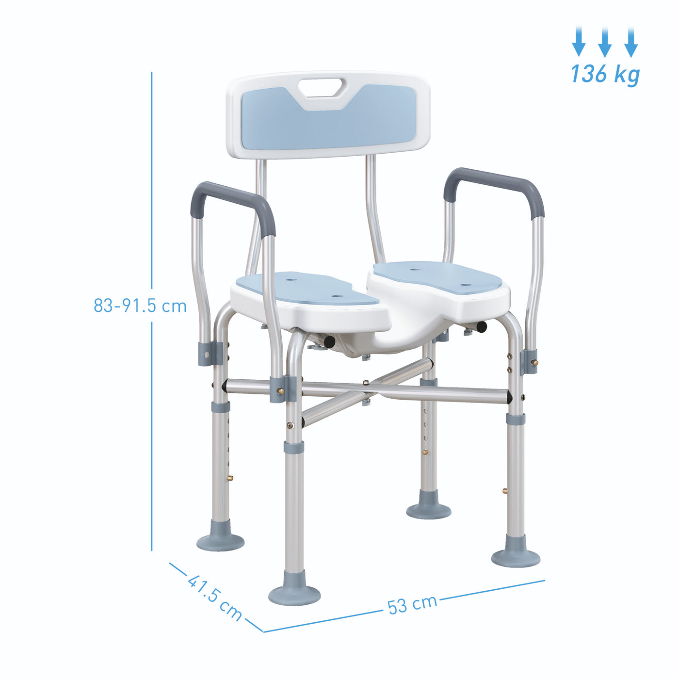 HOMCOM Aluminium Shower Chair, with Padded Seat - Light Blue - Sky Blue