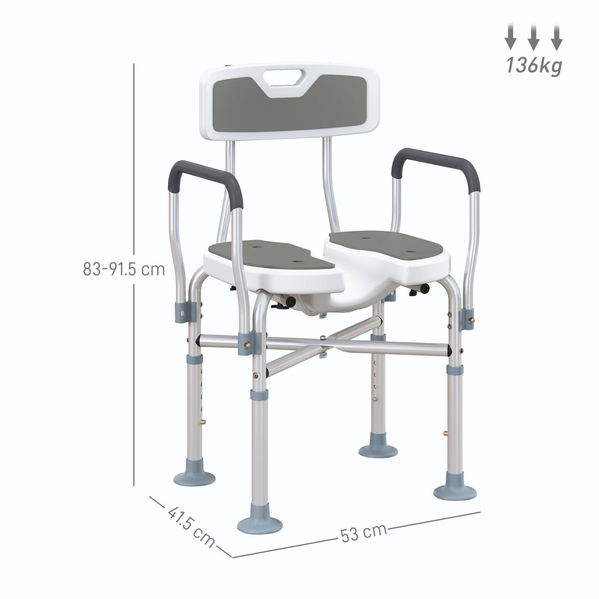 HOMCOM Shower Chair with Hygiene Cut-Out Seat and Reinforced Crossbars, Height Adjustable Padded Bath Chair with Non-slip Feet for Elderly Seniors Disabled Handicap, Tool-Free Assembly, Grey - Grey