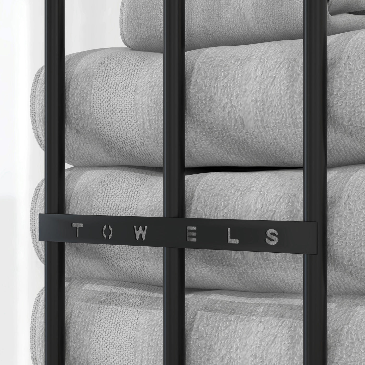 HOMCOM Six Large Towel Metal Holder, with Mounting Accessories - Black