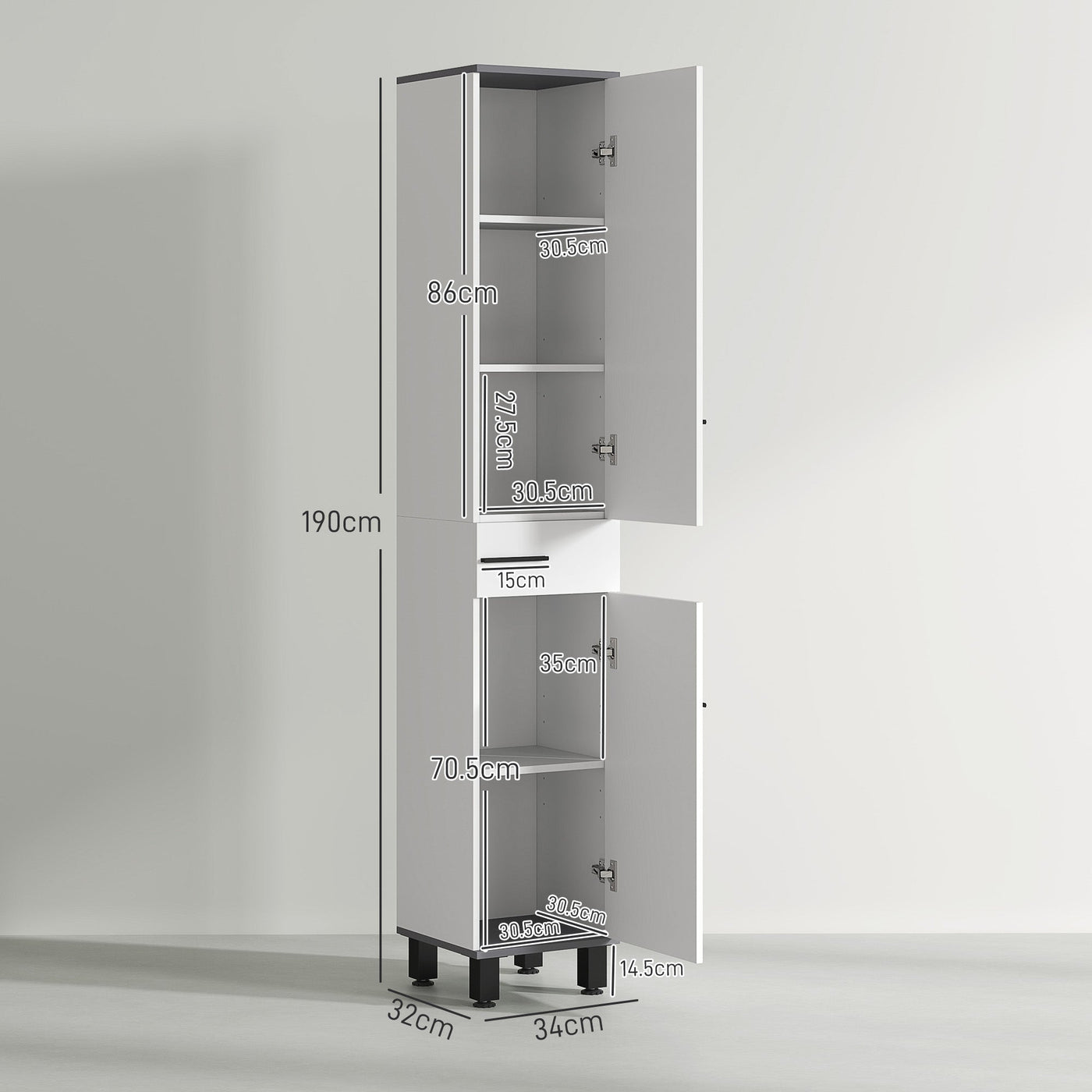 HOMCOM 190cm Slim Bathroom Storage Cabinet - White - White
