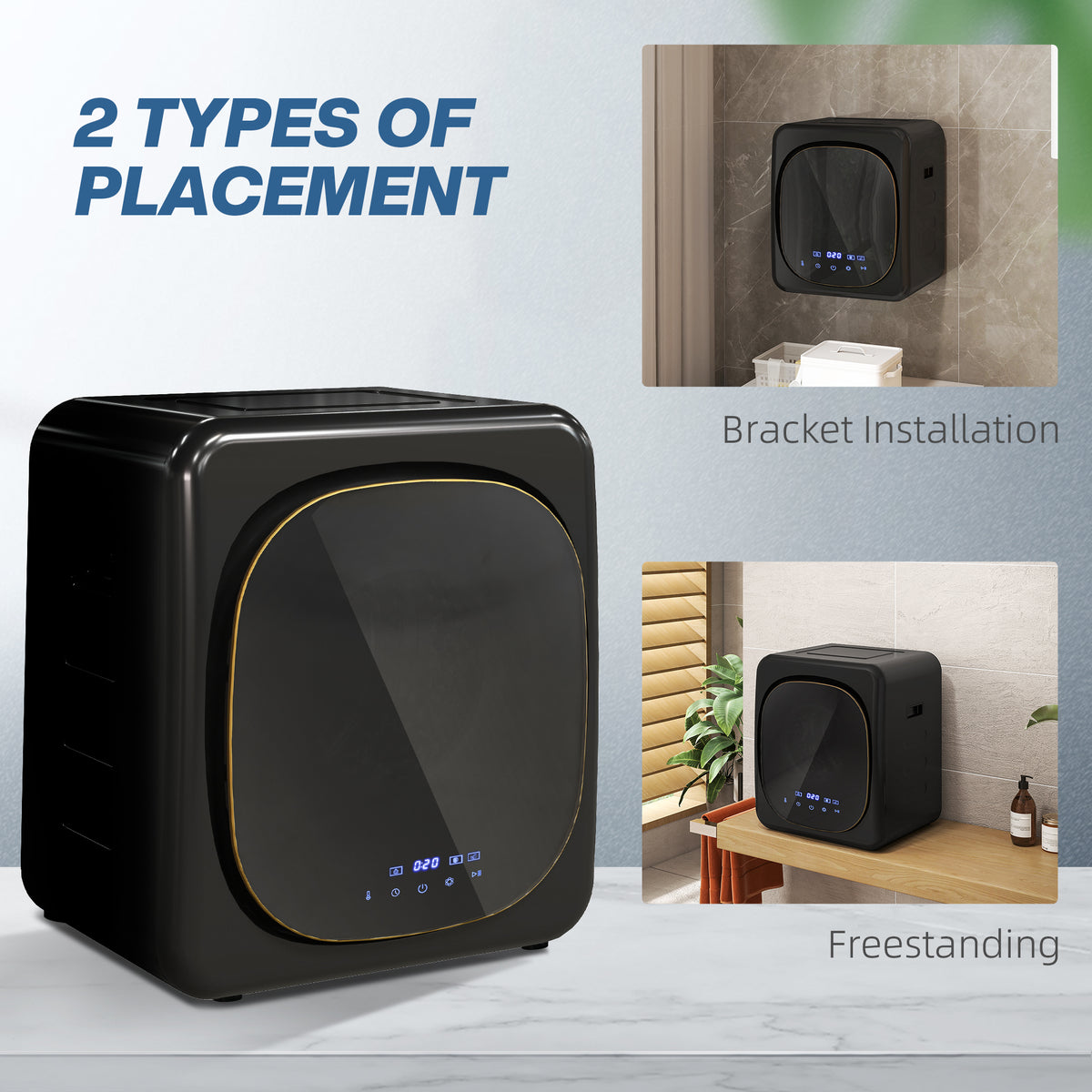 HOMCOM 4kg Vented Tumble Dryer with Deodorize, Smart Mode, 800W Compact Tumble Dryer with Stainless Steel Tub, Front Load, for Flat, Home, RVs, Black - Black