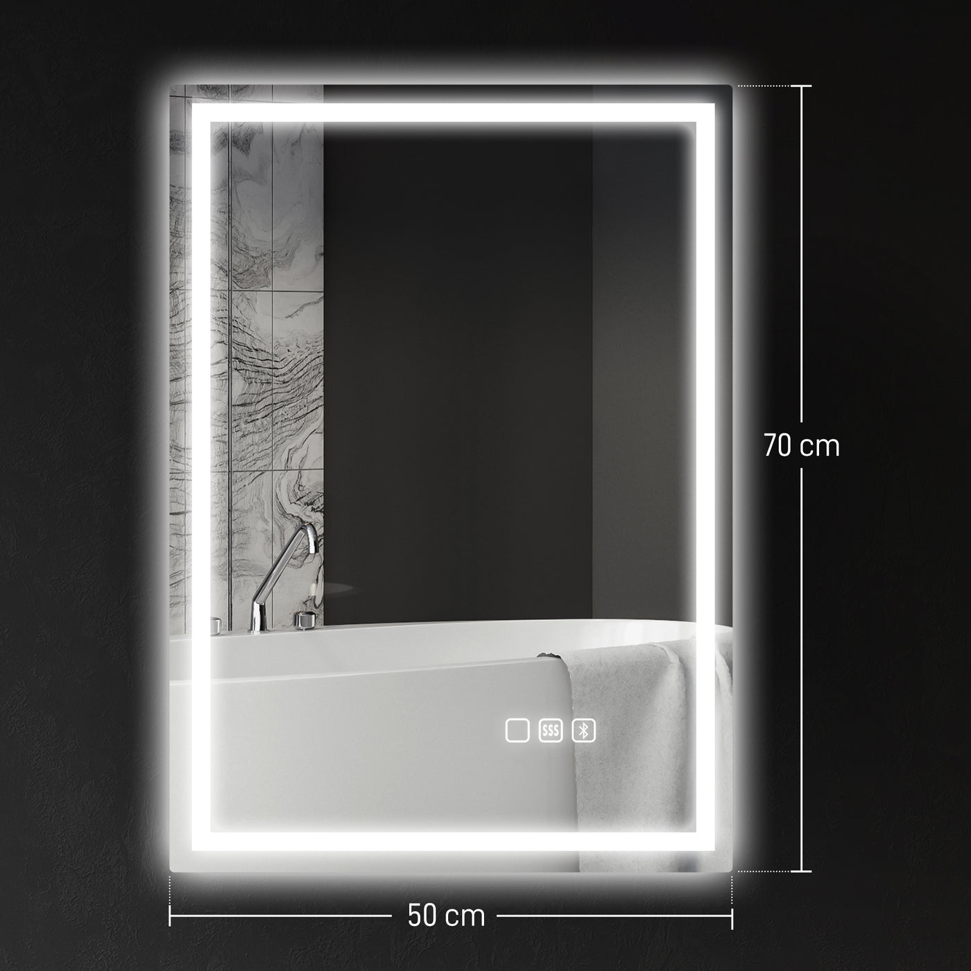 HOMCOM 50 x 70 cm Anti-Fog LED Bathroom Mirror, with Bluetooth - Silver Tone