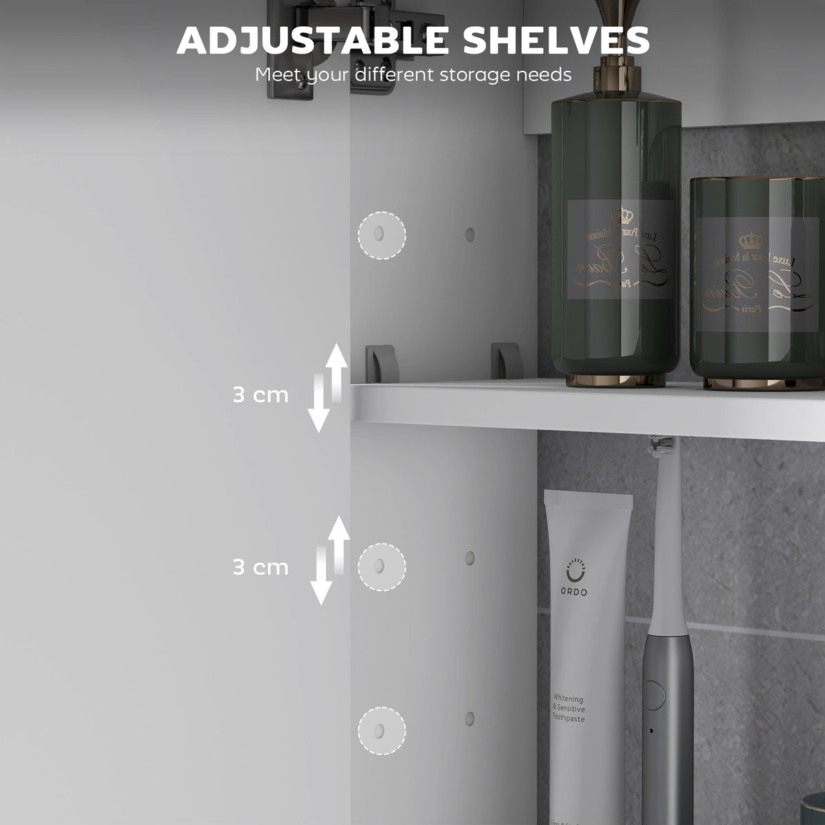 HOMCOM 60 x 15 cm Double Door Bathroom Mirror Cabinet - White