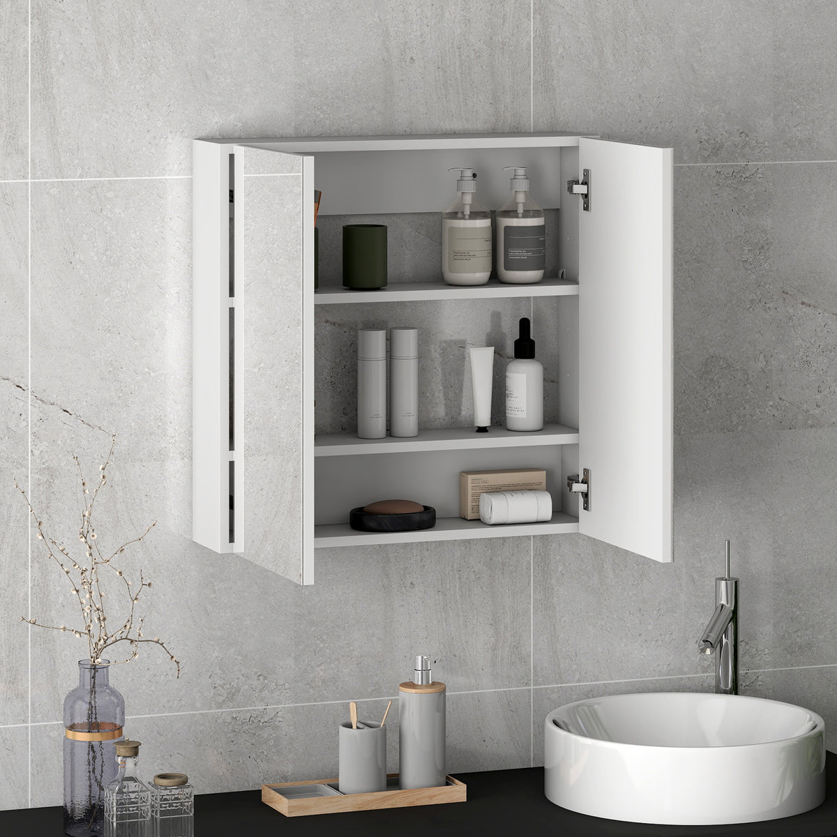 HOMCOM 60 x 15 cm Double Door Bathroom Mirror Cabinet - White - White