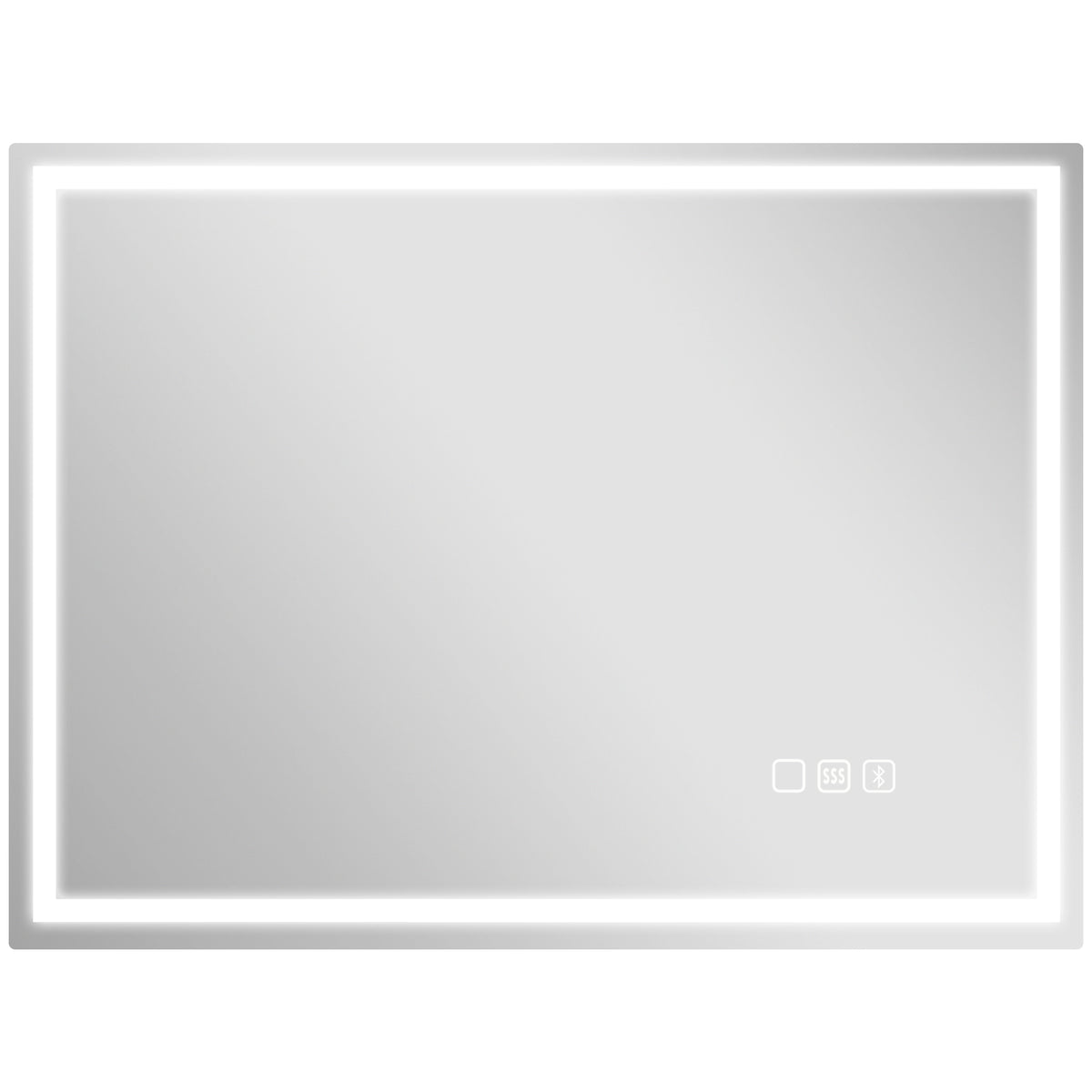HOMCOM 60 x 80 cm Anti-Fog LED Bathroom Mirror, with Bluetooth and Clock - Silver Tone - Silver