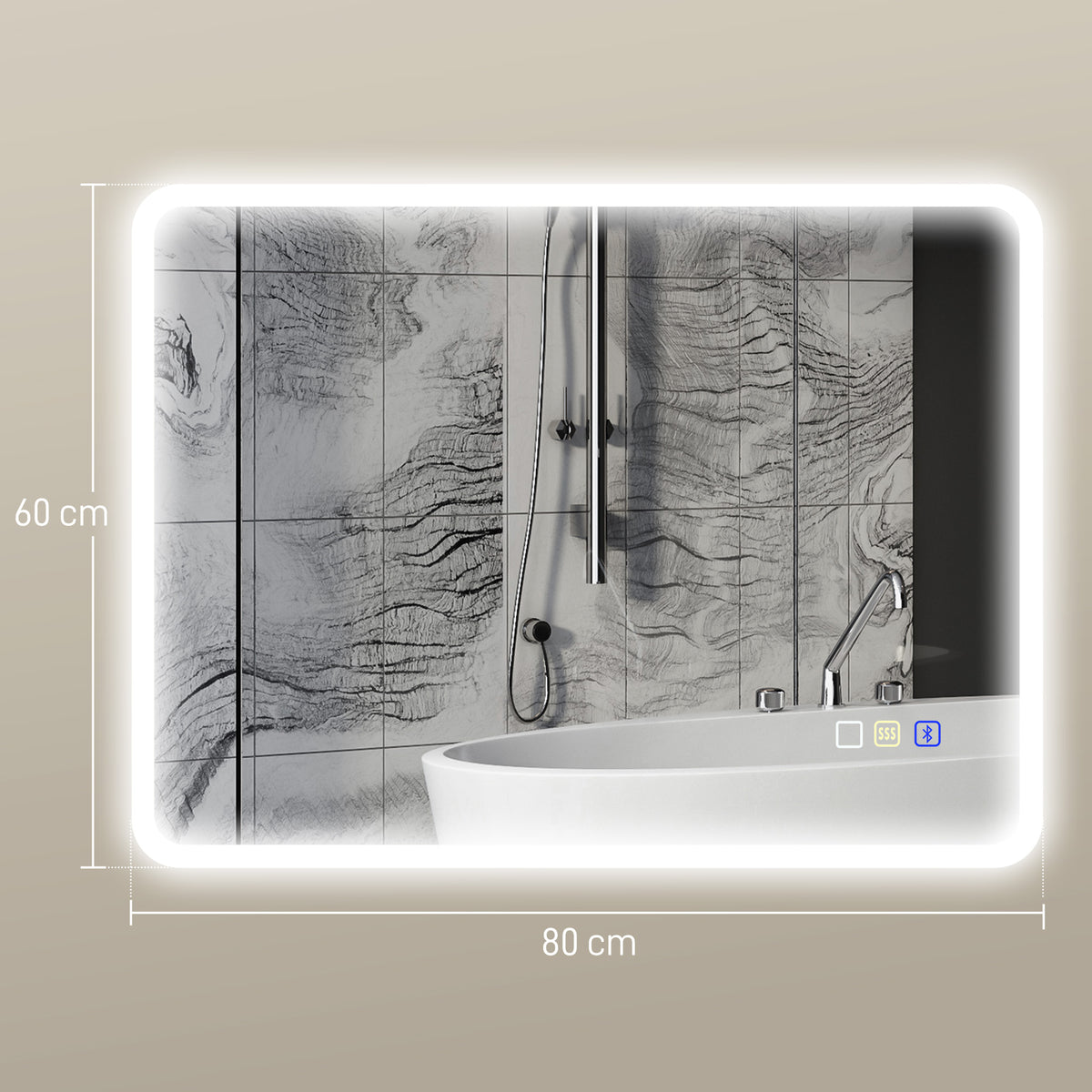 HOMCOM 80 x 60cm LED Bathroom Mirror, with Bluetooth - Silver Tone