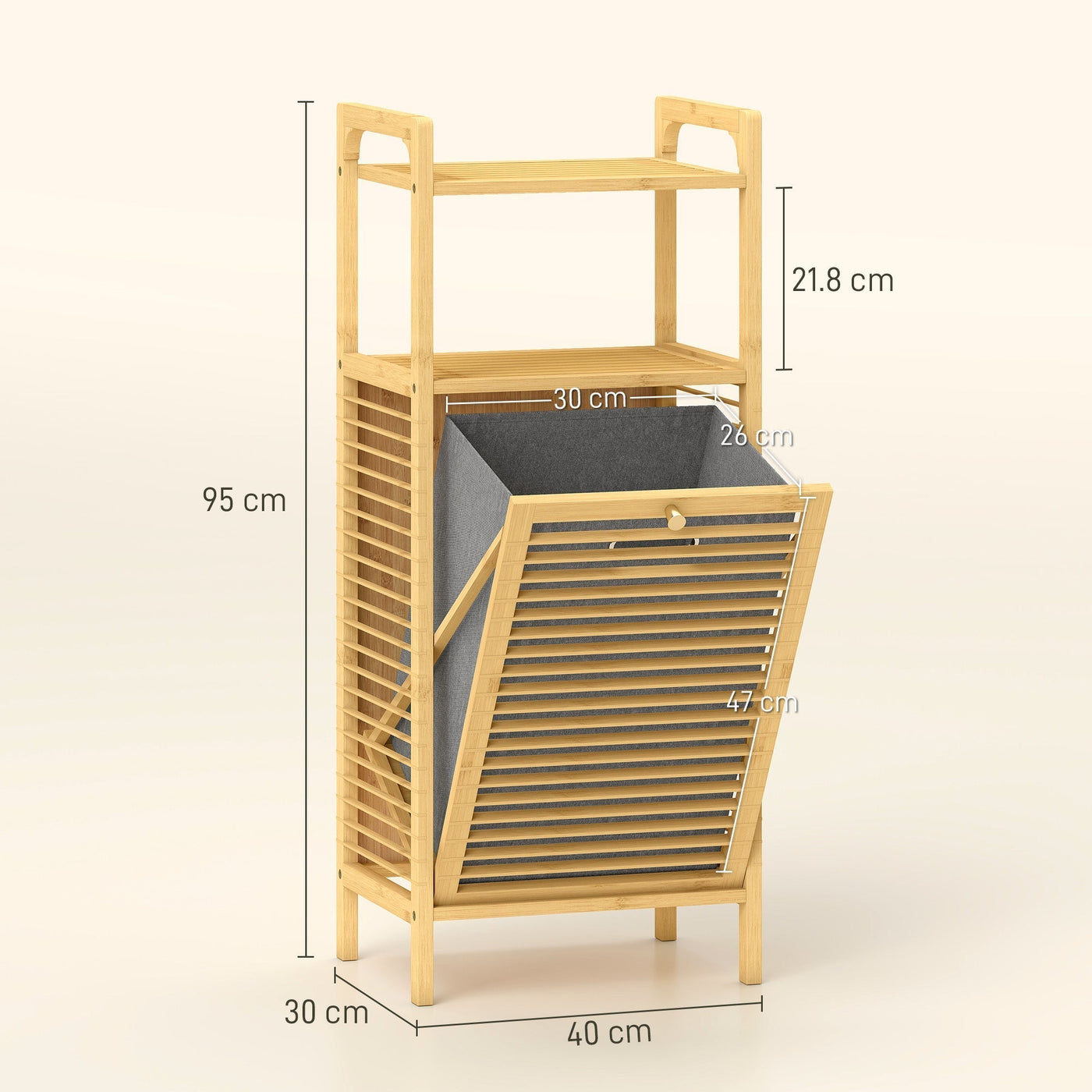 HOMCOM Bamboo Laundry Cabinet with Slatted Door, Bathroom Cabinet with Tilt-Out Hamper and Removable Liner Bag, 40 x 30D x 95 cm, Natural Wood Finish - Natural wood finish