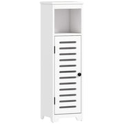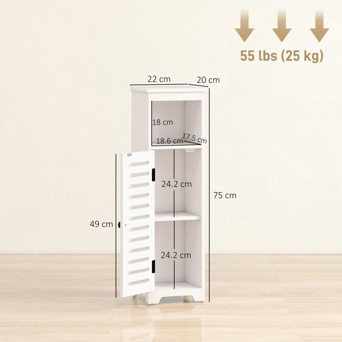 HOMCOM Bathroom Floor Cabinet, Bathroom Storage Unit with Louvered Door, Open Shelf, Adjustable Shelf, White, 22 x 20 x 75 cm - White
