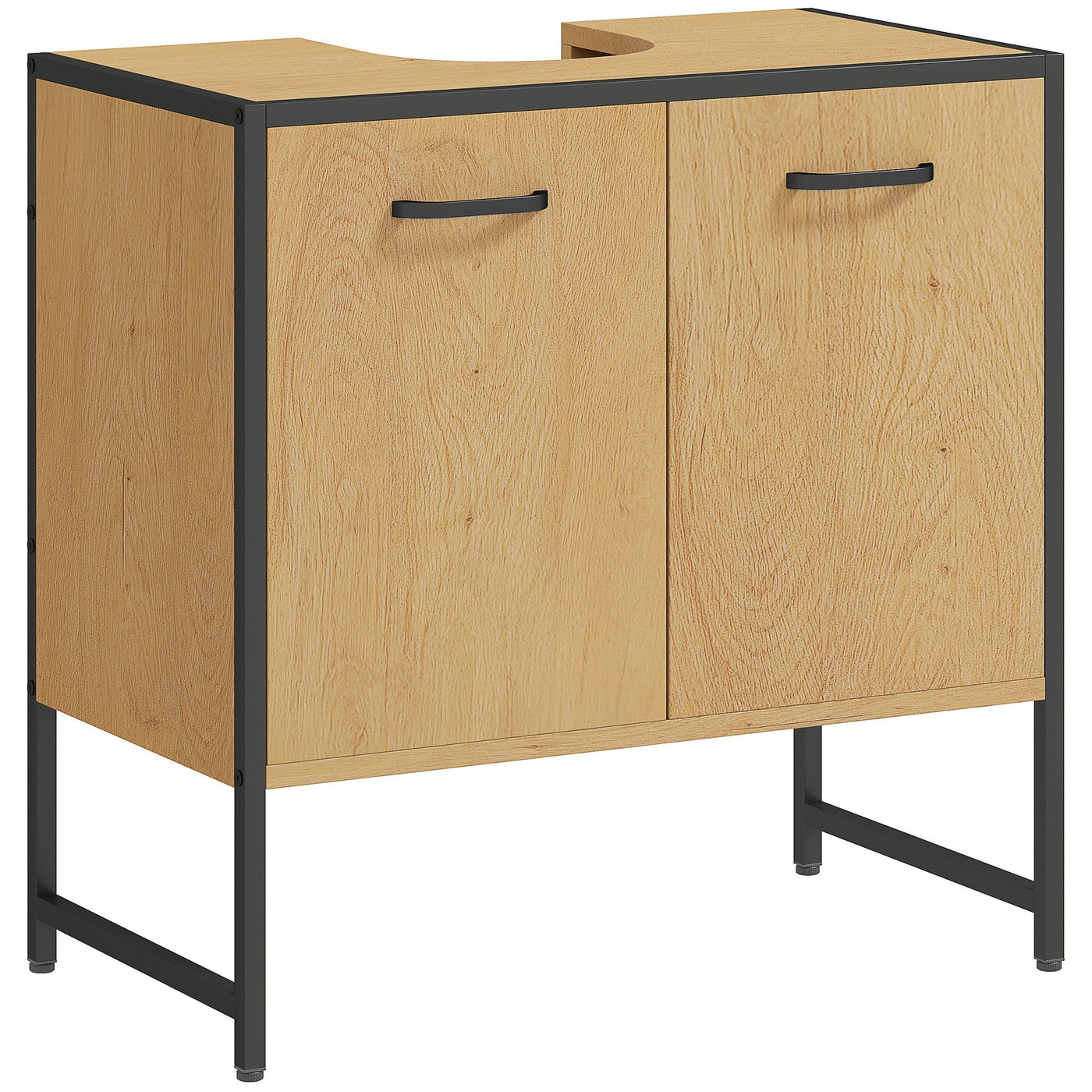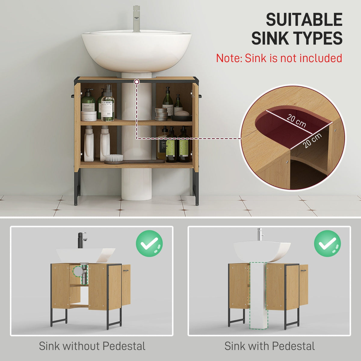 HOMCOM Bathroom Vanity Unit, Under Sink Storage Cabinet with Soft-Close Doors for Basin without or with Pedestal, Natural - Natural wood finish