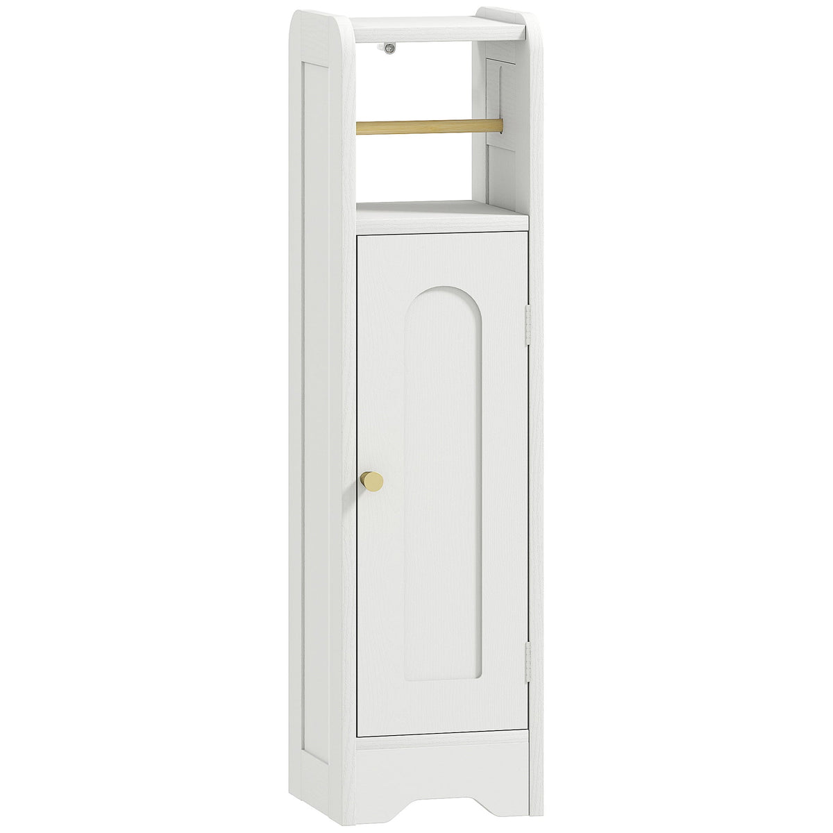HOMCOM Small Bathroom Storage Cabinet with Toilet Roll Holder - White - White