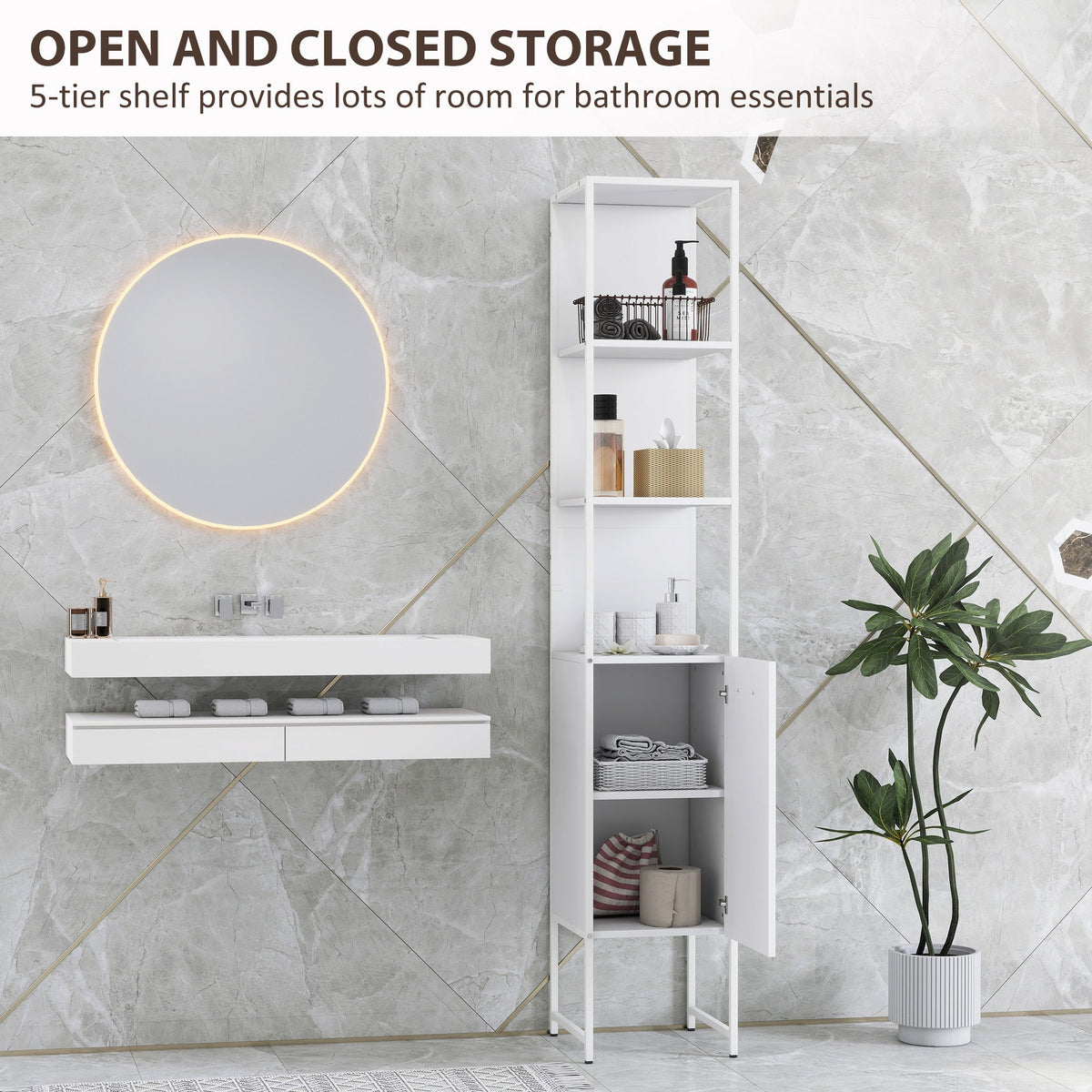 HOMCOM Tall Bathroom Cabinet with Open Shelves and Adjustable Shelf - White - White