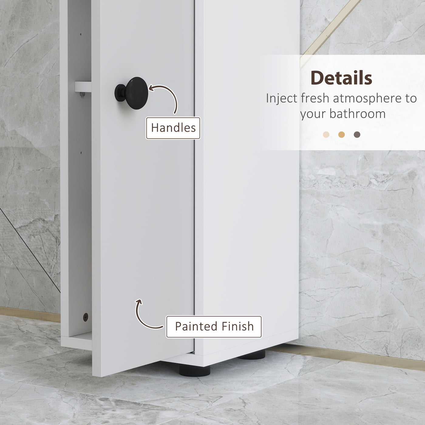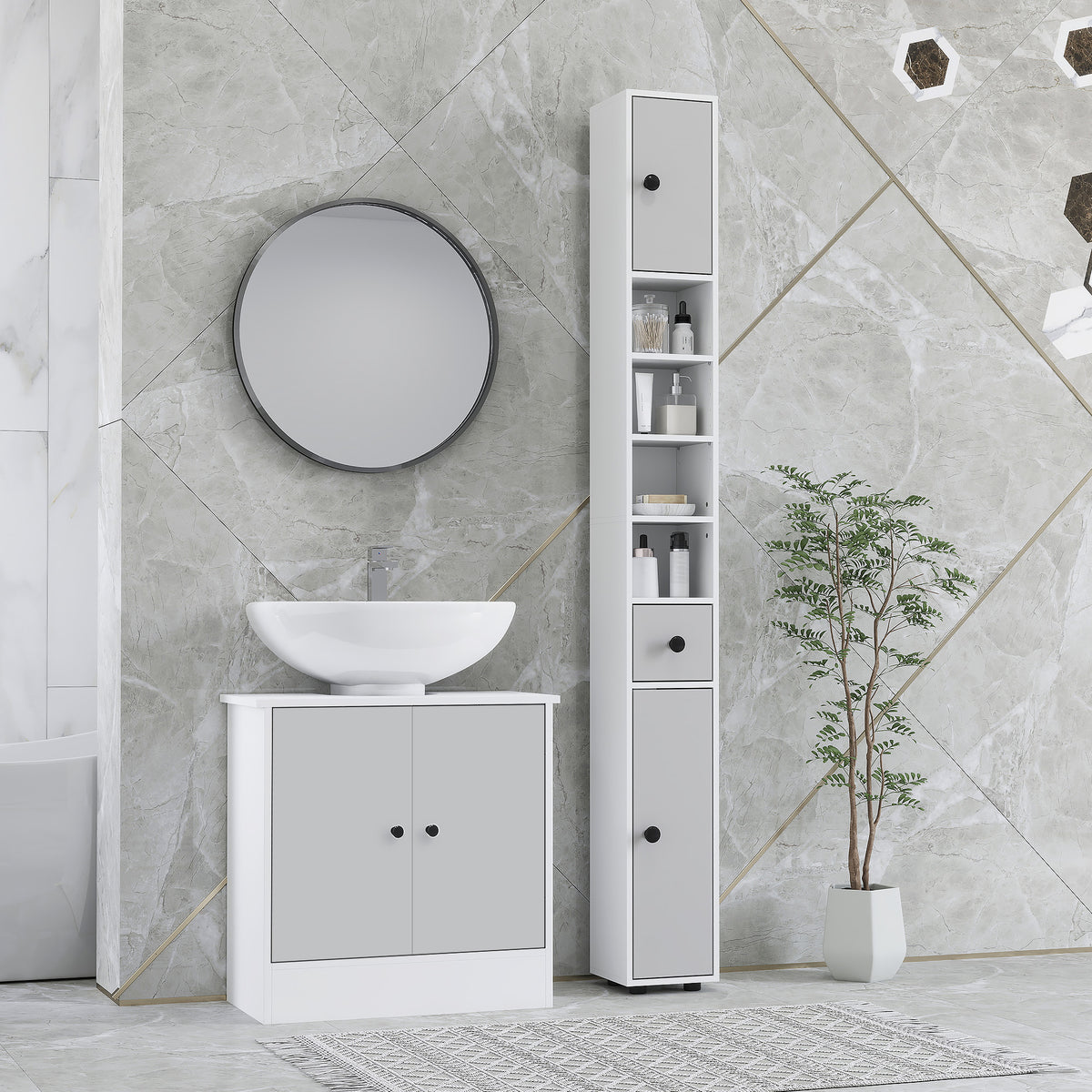 kleankin 180cm Slim Bathroom Cabinet, with Drawer, Shelves and Cupboards - Light Grey - Light Grey