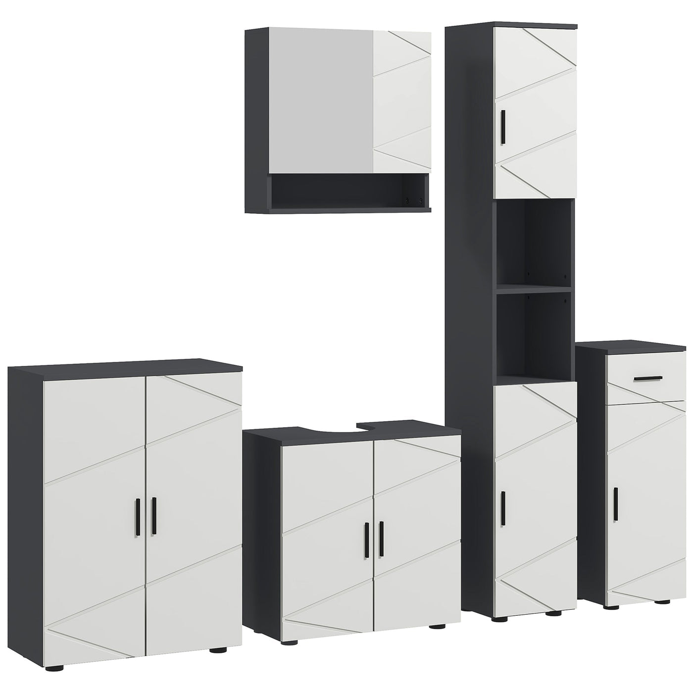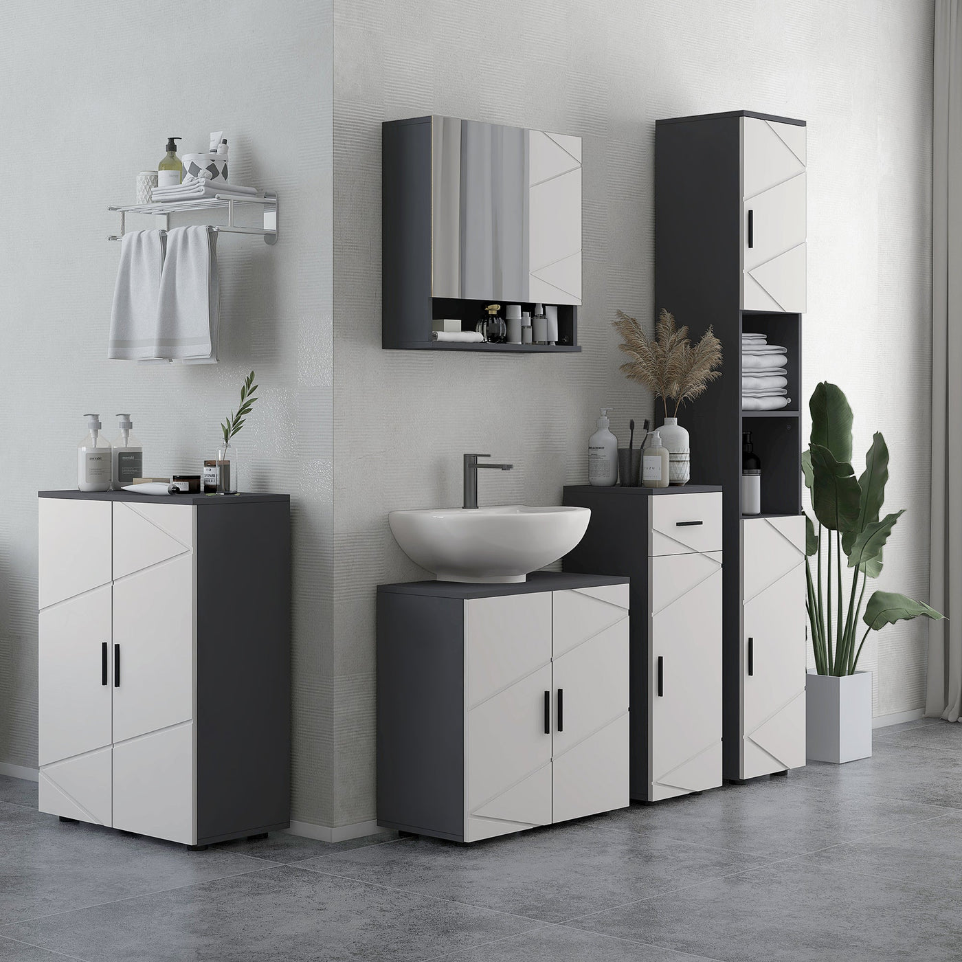 kleankin 5-Piece Bathroom Furniture Set, Bathroom Storage Cabinet with Doors and Shelves, Tall and Small Floor Cabinets, Wall-mounted Mirror Cabinet, Pedestal Sink Cabinet, Grey - Grey