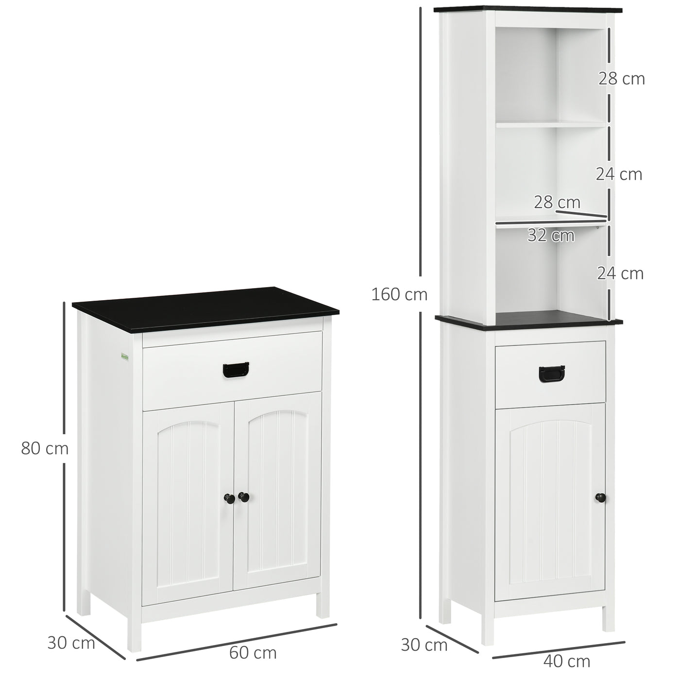 kleankin Bathroom Furniture Set, Bathroom Floor Cabinet with Drawer and Double Door, Tall Bathroom Cabinet with Drawer and Adjustable Shelf for Bathroom, White - White