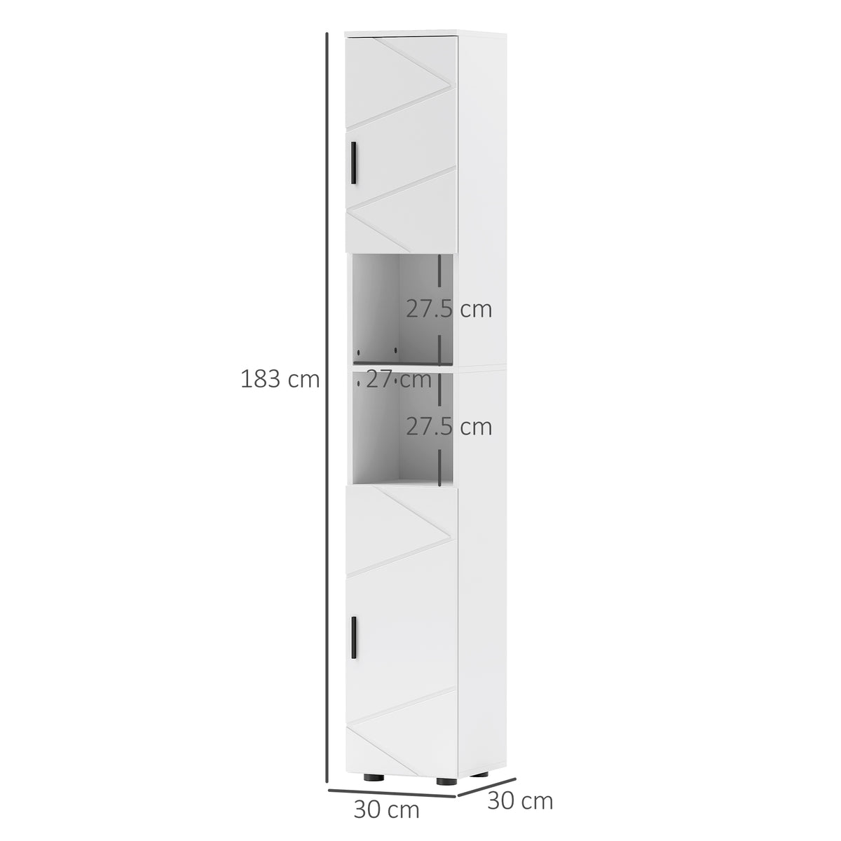 kleankin Line Embossed Tall Bathroom Storage Cabinet - White