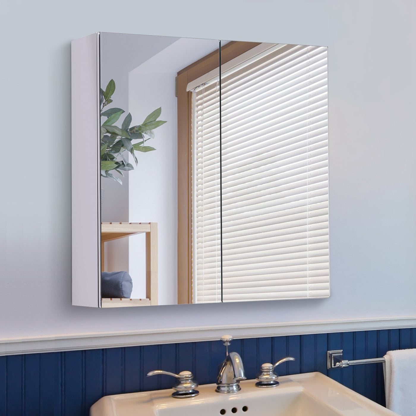 HOMCOM Bathroom Mirror Cabinet, Stainless Steel Wall Mounted Bathroom Storage Cabinet with Double Doors, 60x55cm - silver