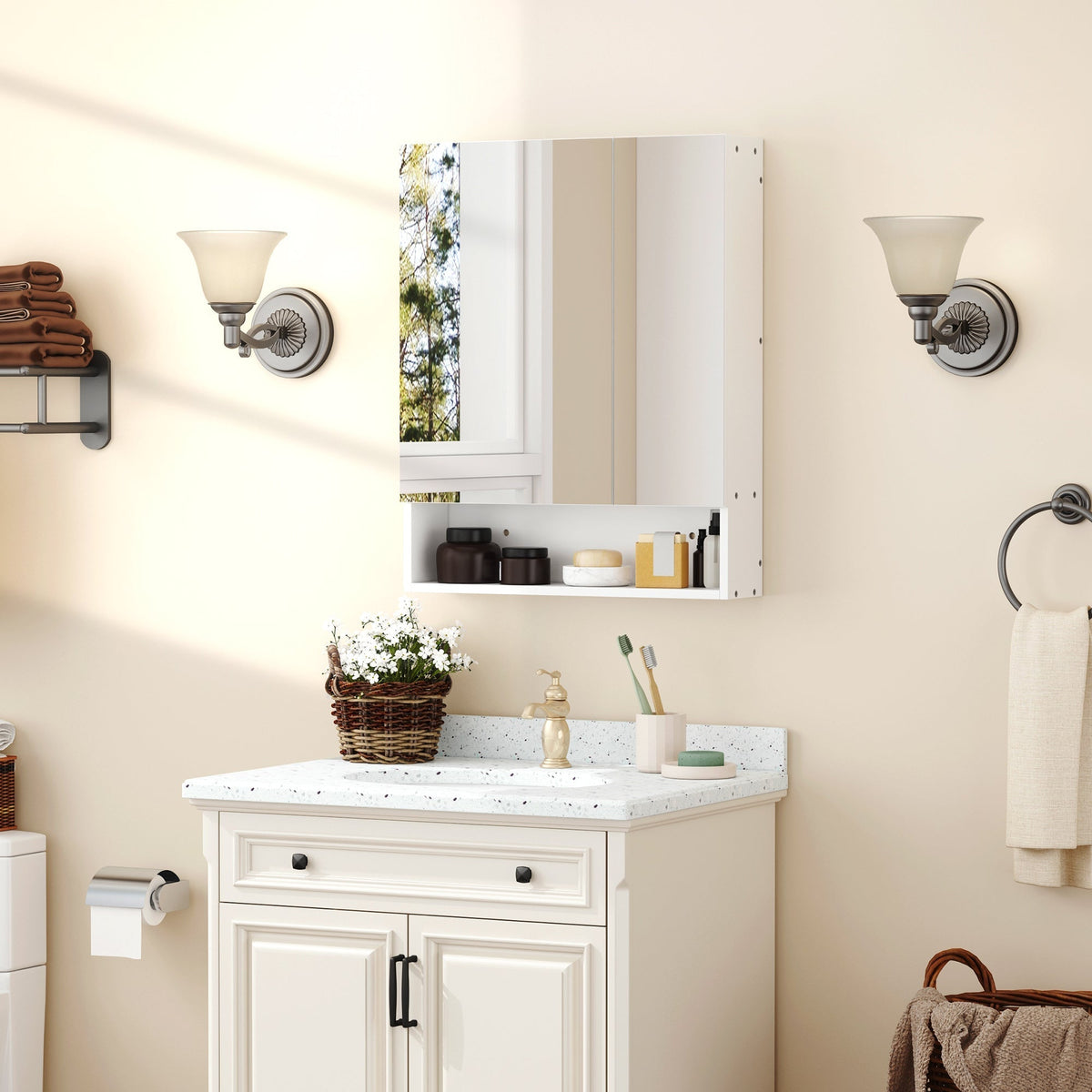 kleankin Bathroom Cabinet with Mirror, Wall Mounted Bathroom Mirror Cabinet with Adjustable Shelf, 2 Doors Storage Cupboard, White - White