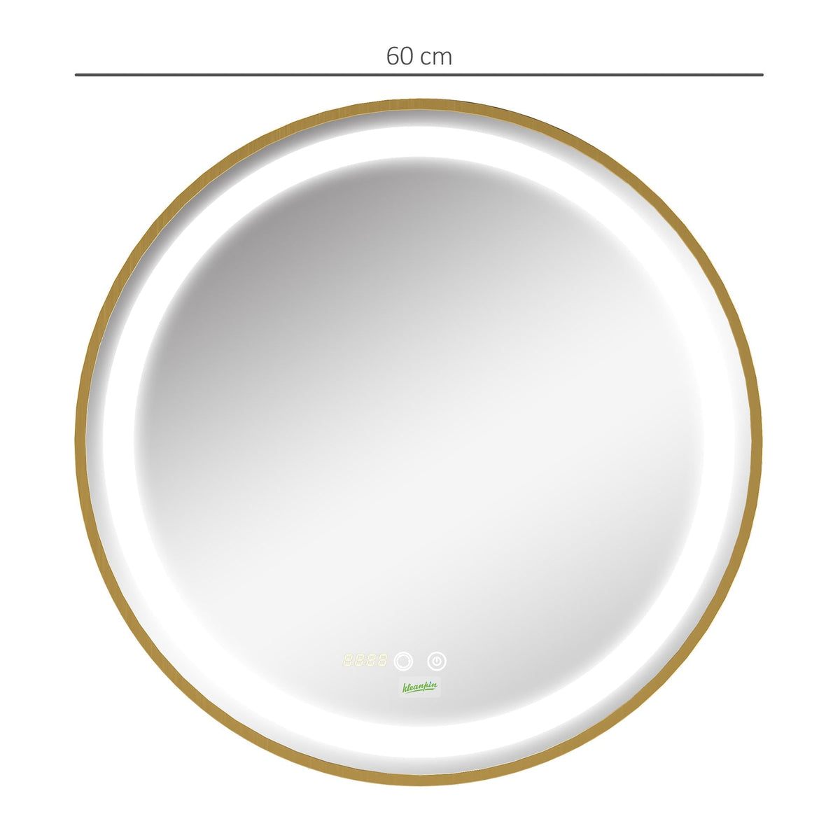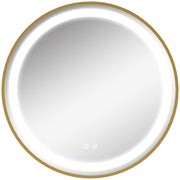 kleankin Round LED Bathroom Mirror, Dimmable Lighted Wall Mount Mirror with 3 Colours, Time Display, Memory Function, Hardwired - Gold Tone